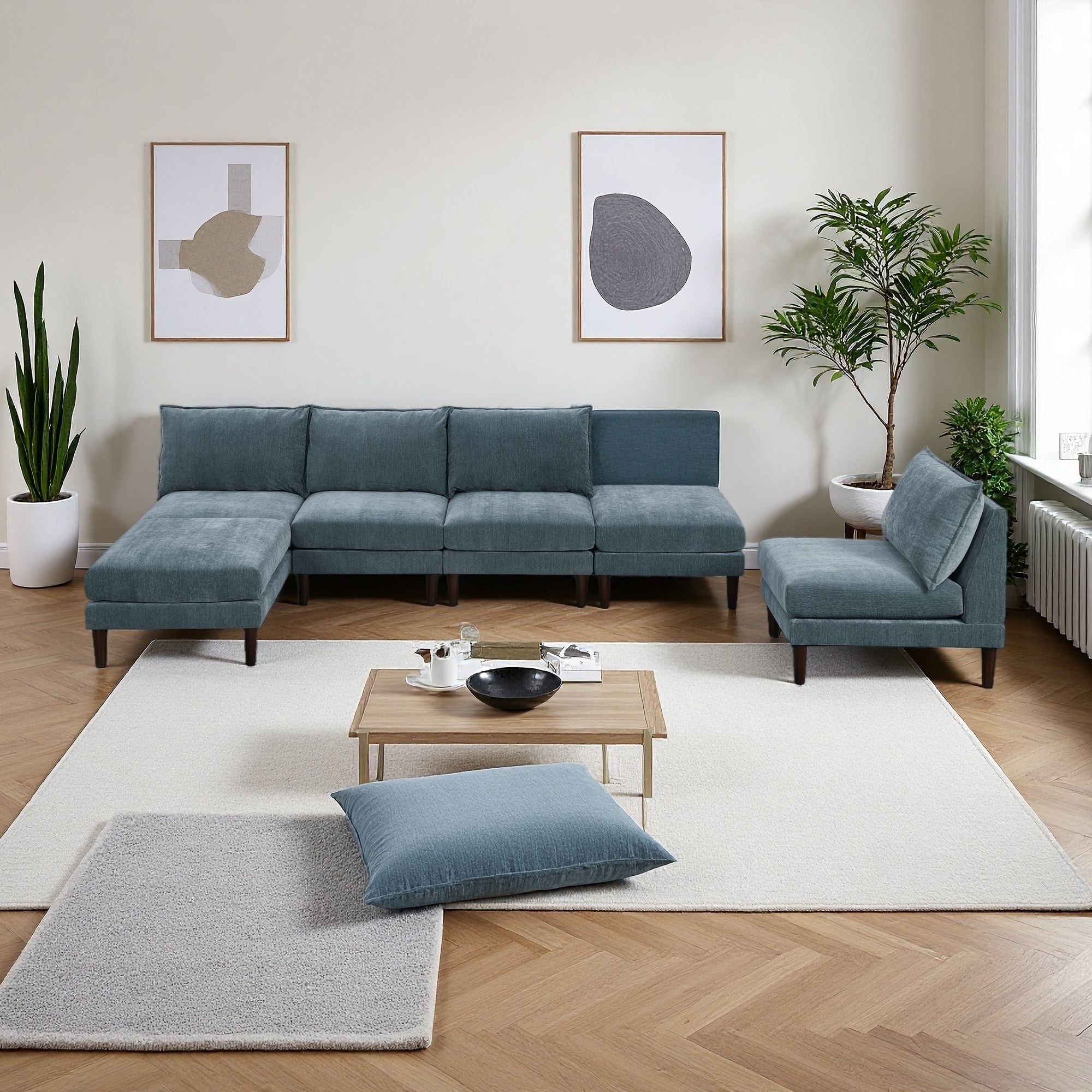 114" Fabric Modular 6-Piece Sectional Sofa with 4 Armless Chairs & 2 Ottomans