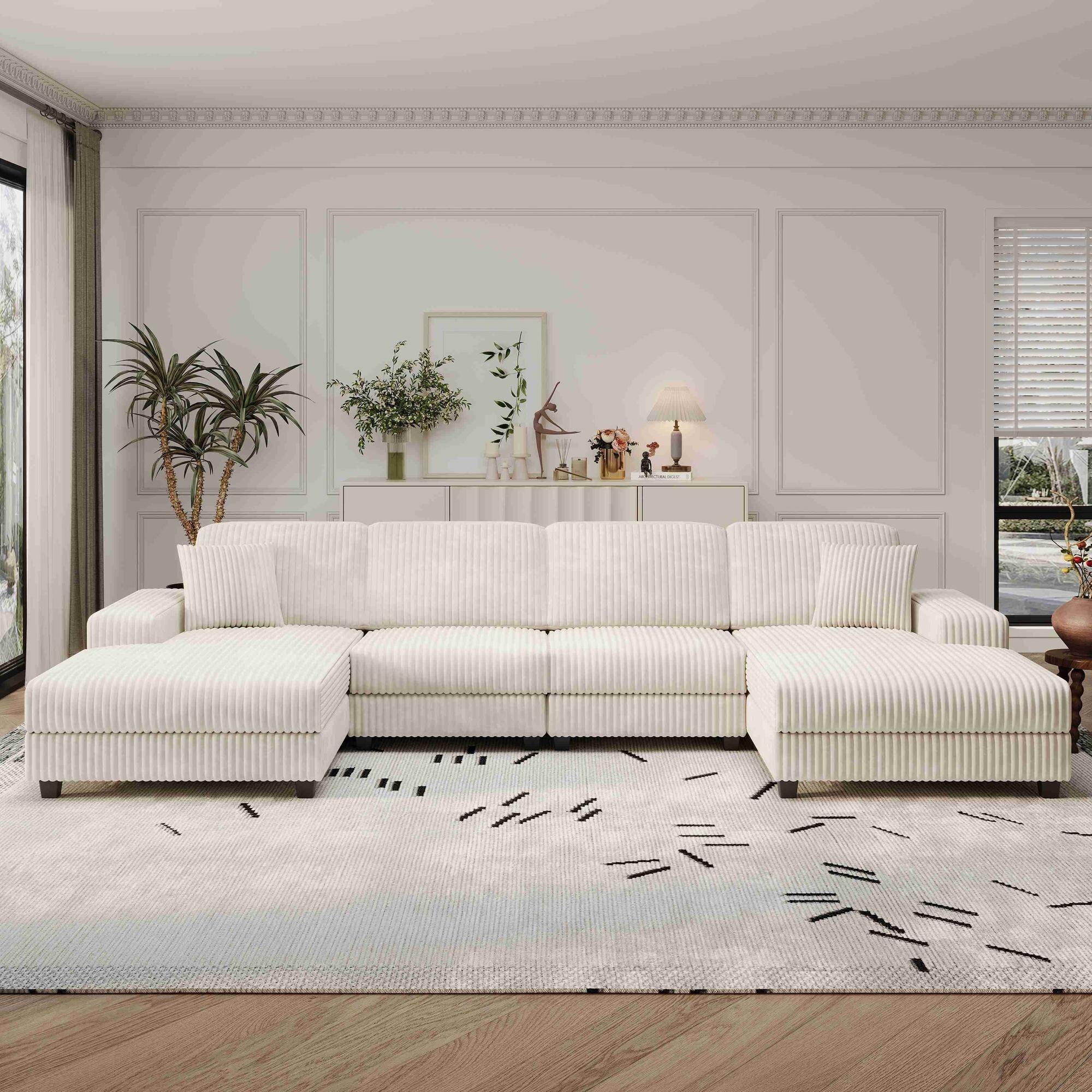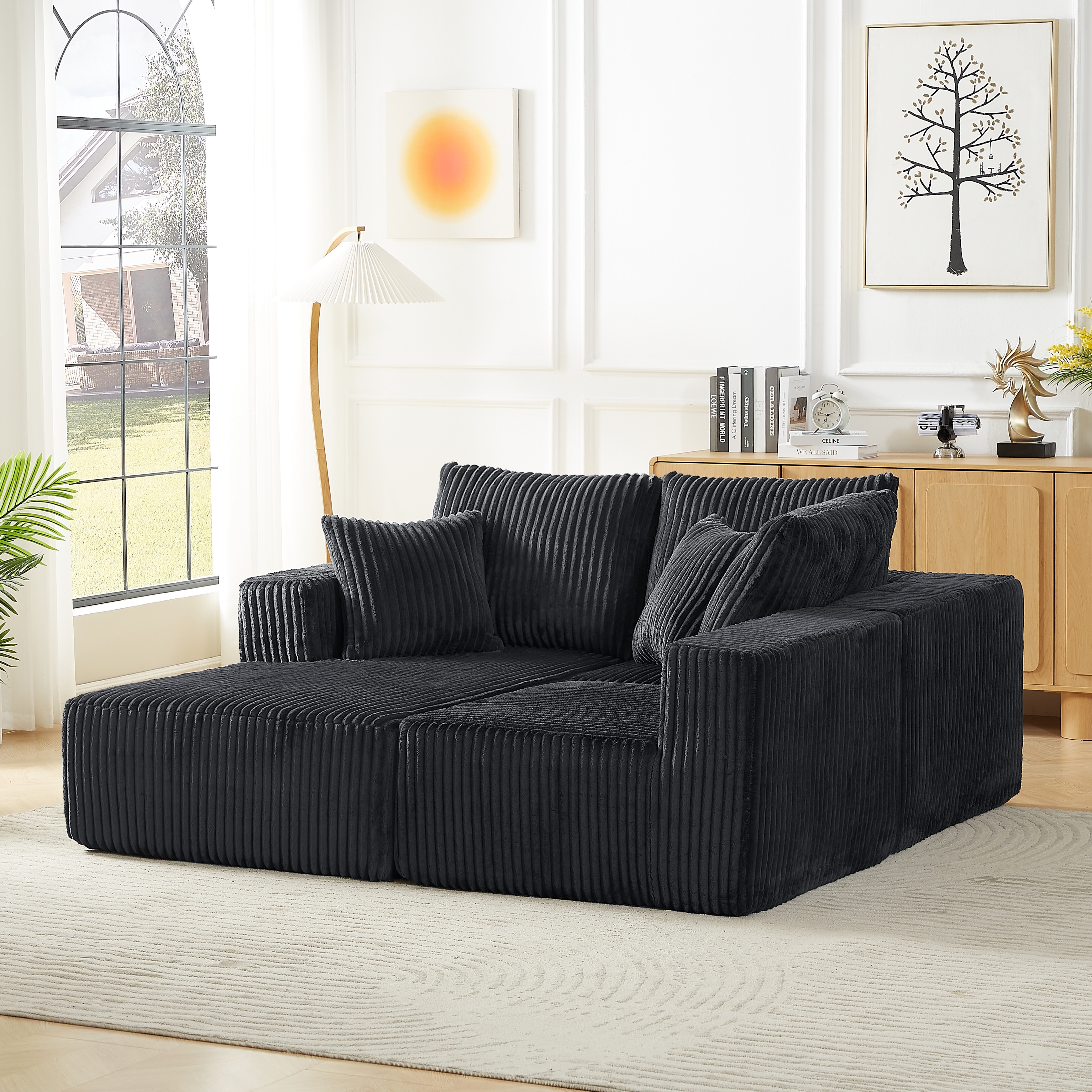 Modular L Shaped Sectional Sofa, Corduroy Cloud Couch w/ Right Chaise