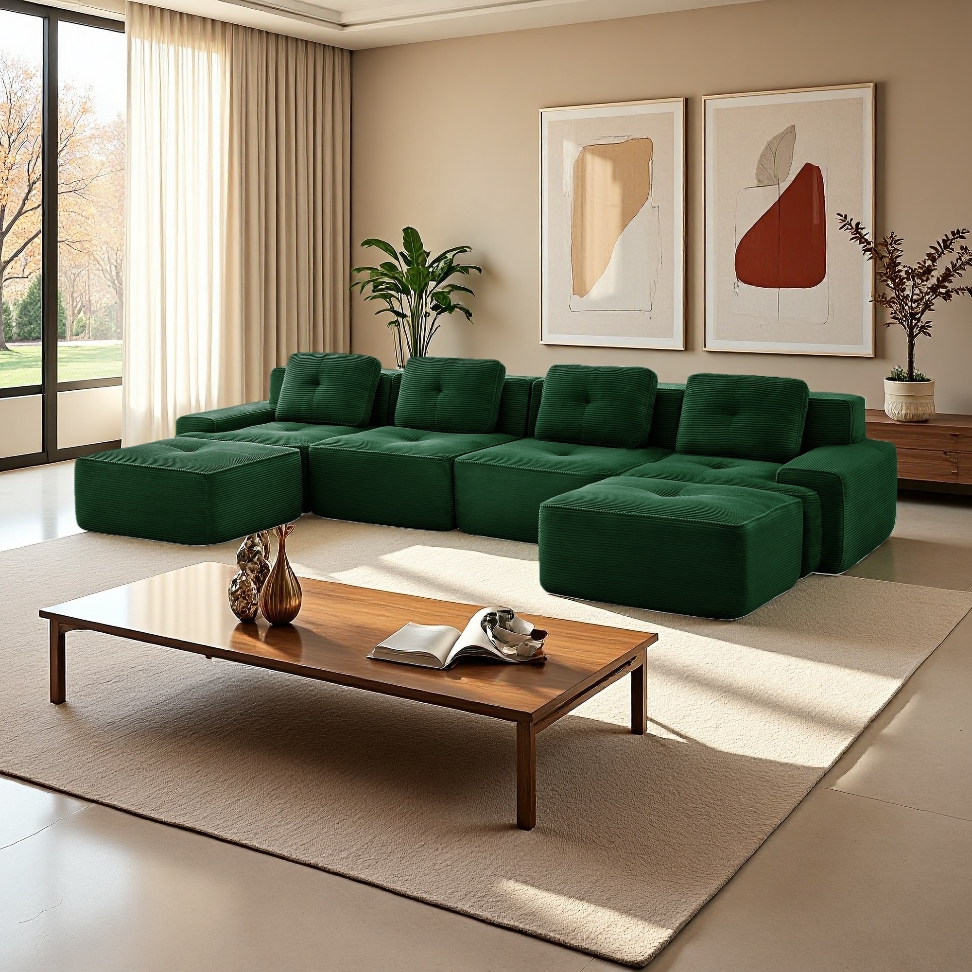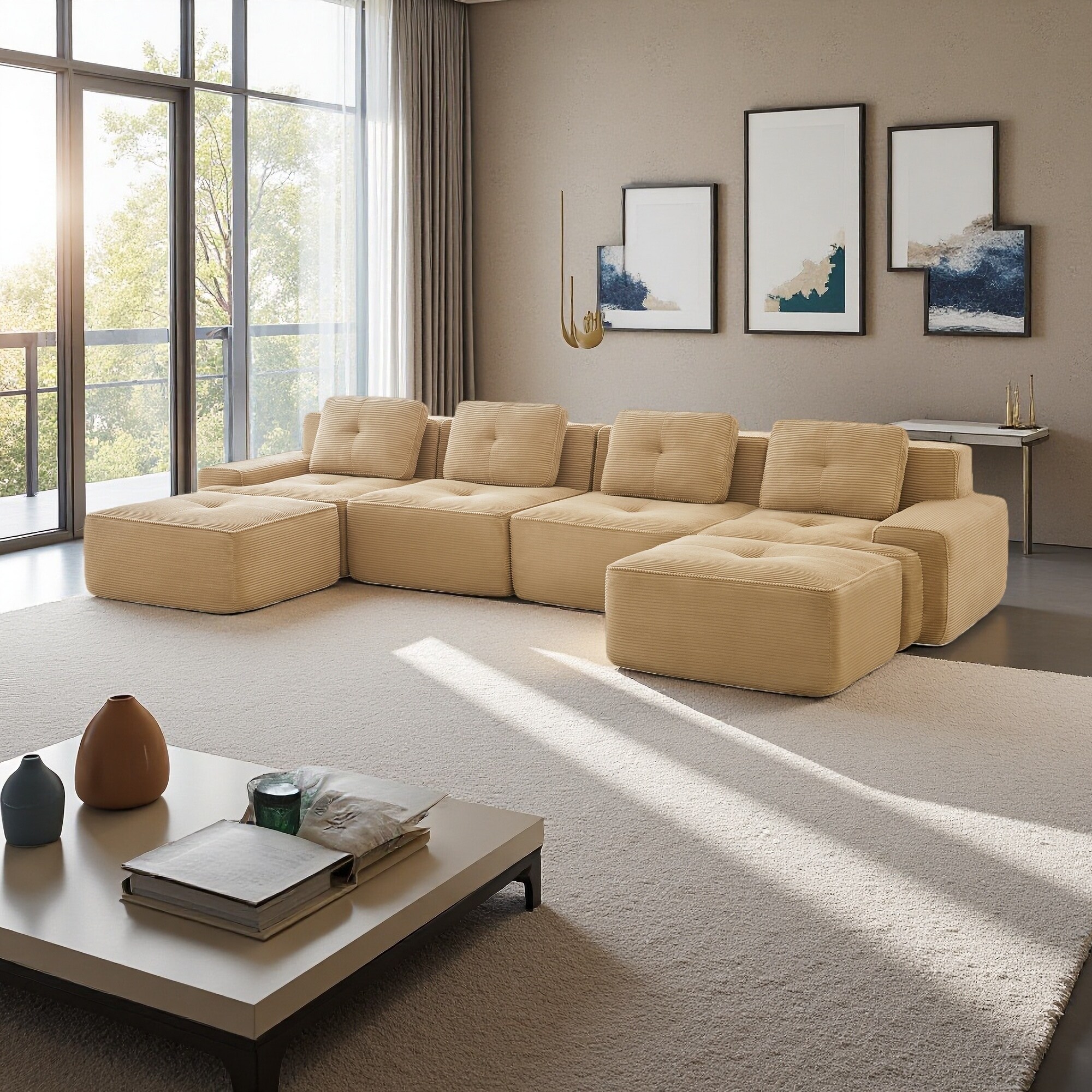 152.8" Corduroy U-Shaped Modular Sectional Sofa with Deep Seat & 2 Ottomans