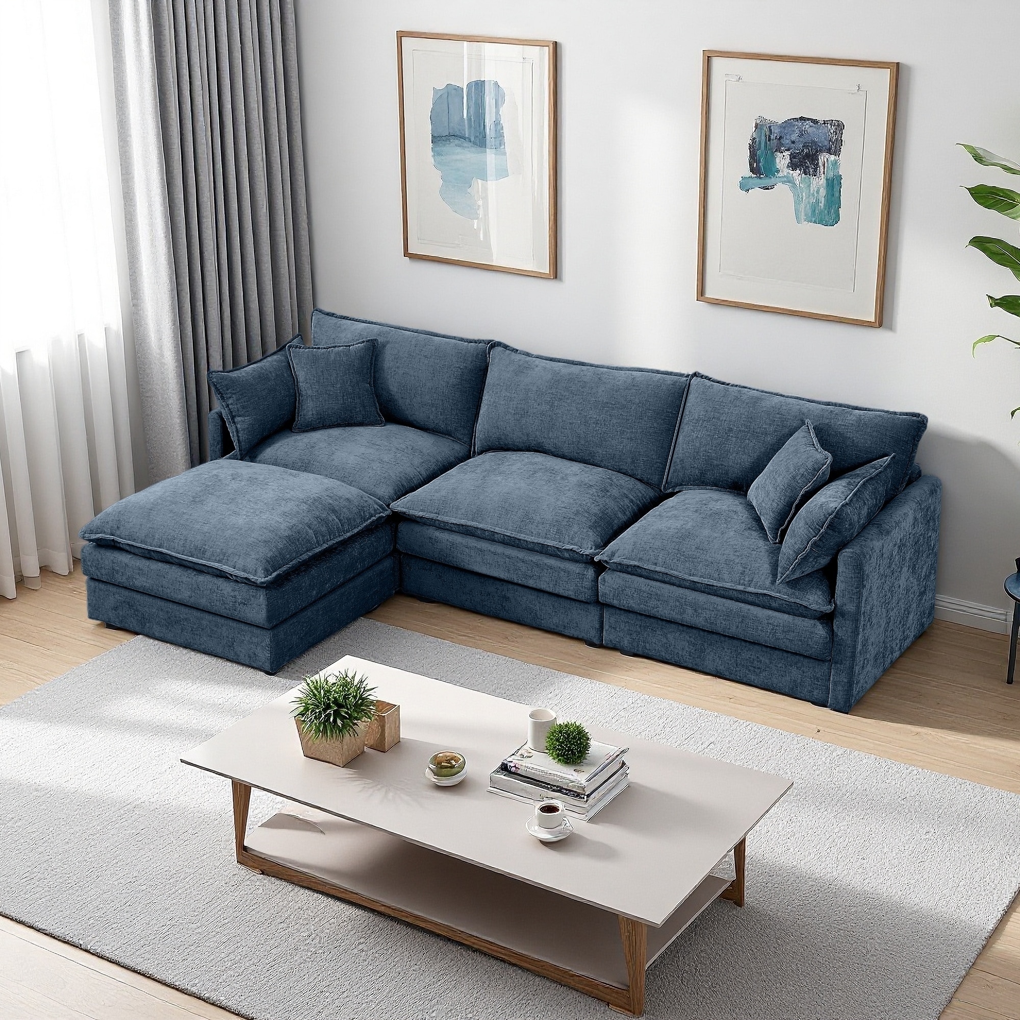 102" Chenille L-Shaped 3-Seat Sectional Sofa with Movable Ottoman & Cloud Cushions