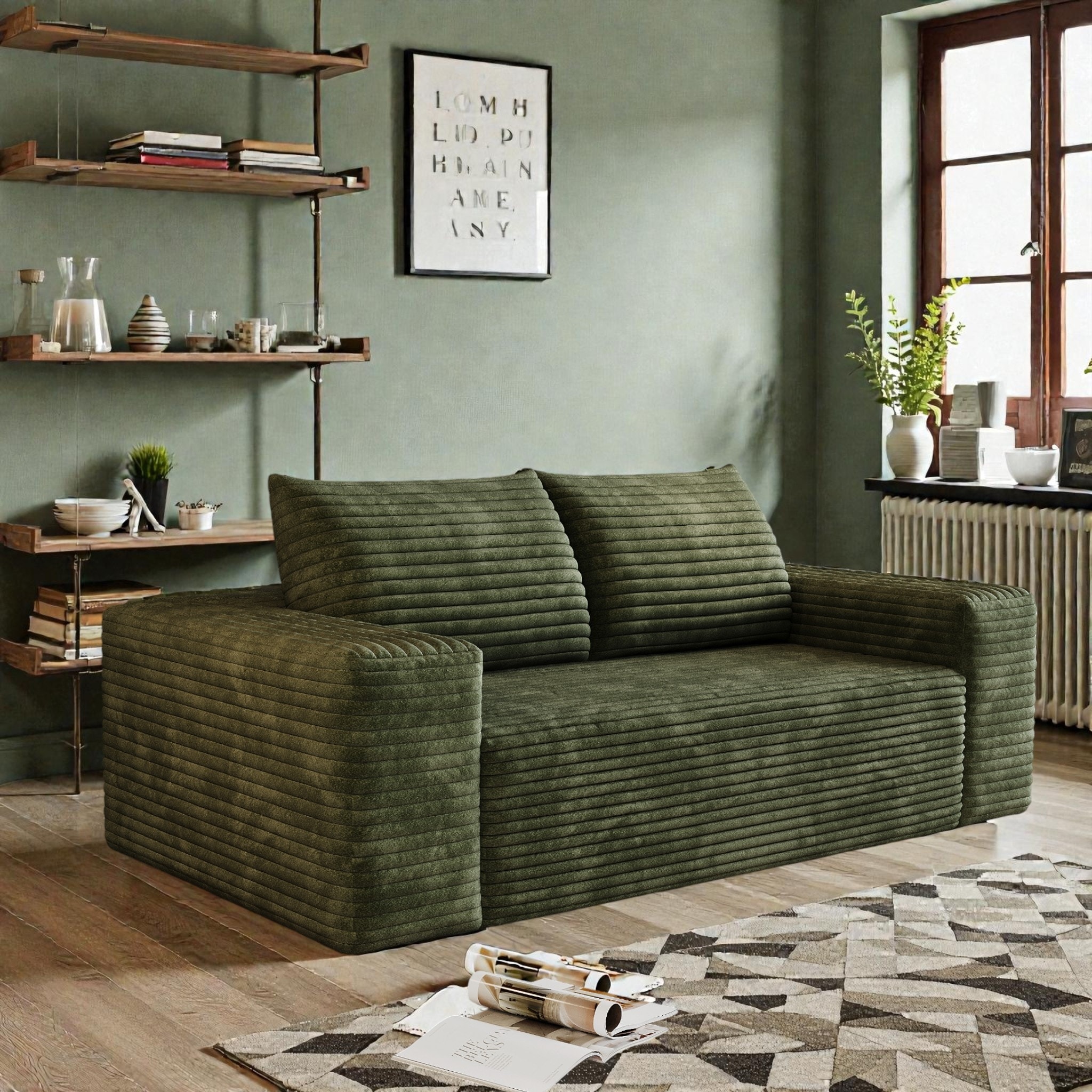 63" Corduroy 2-Seater Sofa, Deep Seat Comfy Loveseat Couch, No-Assembly Soft Fabric Sofa for Living Room & Apartments