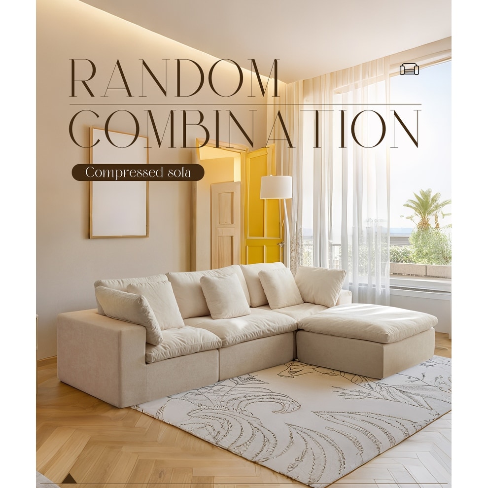 Deep Seat Sectional Sofa with Ottoman and Pillows Sherpa Fabric Sleeper Couch