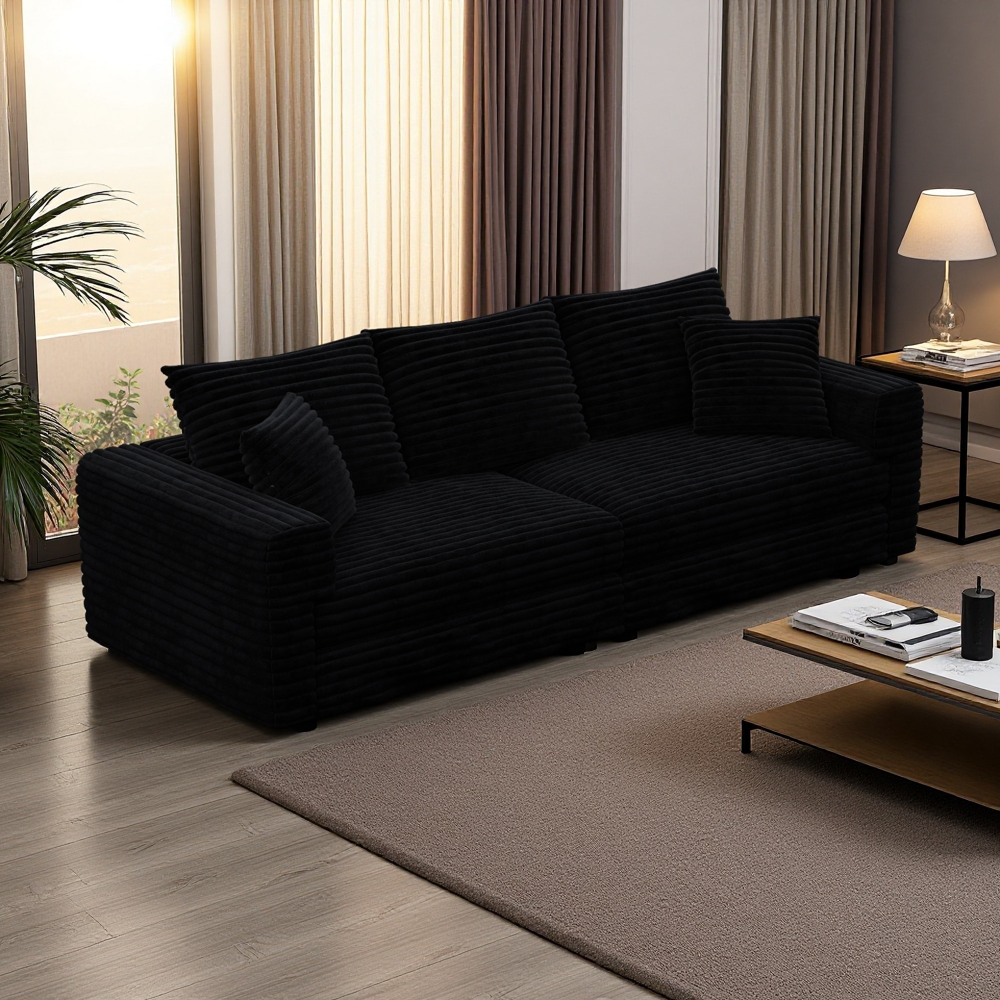 82.7" Plush Corduroy 3-Seat Sofa Upholstered Couch with Deep Seat & Soft Pillow, Convertible Lounge Chair with Matching Ottomans