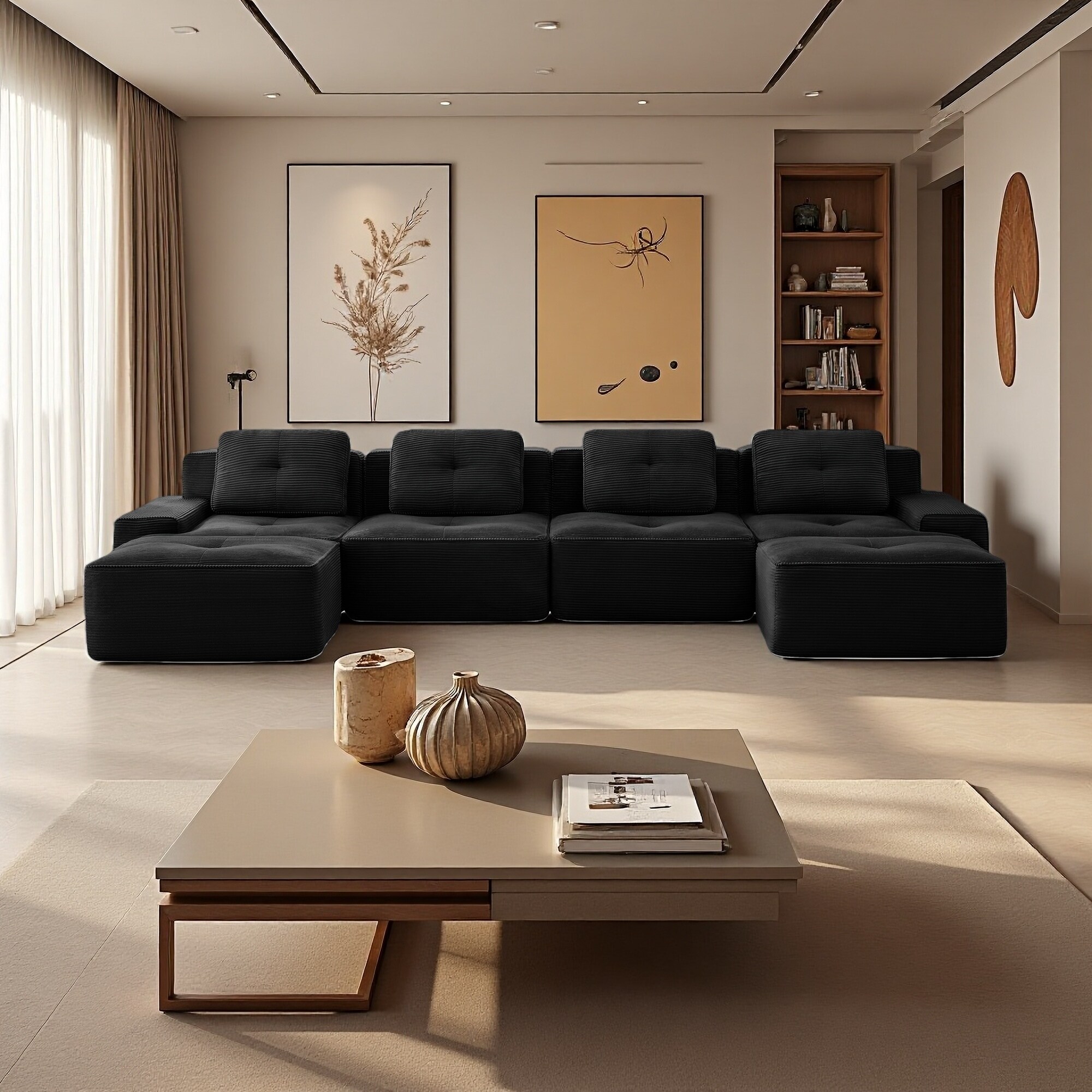 152.8" Corduroy U-Shaped Modular Sectional Sofa with Deep Seat and 2 Movable Ottomans