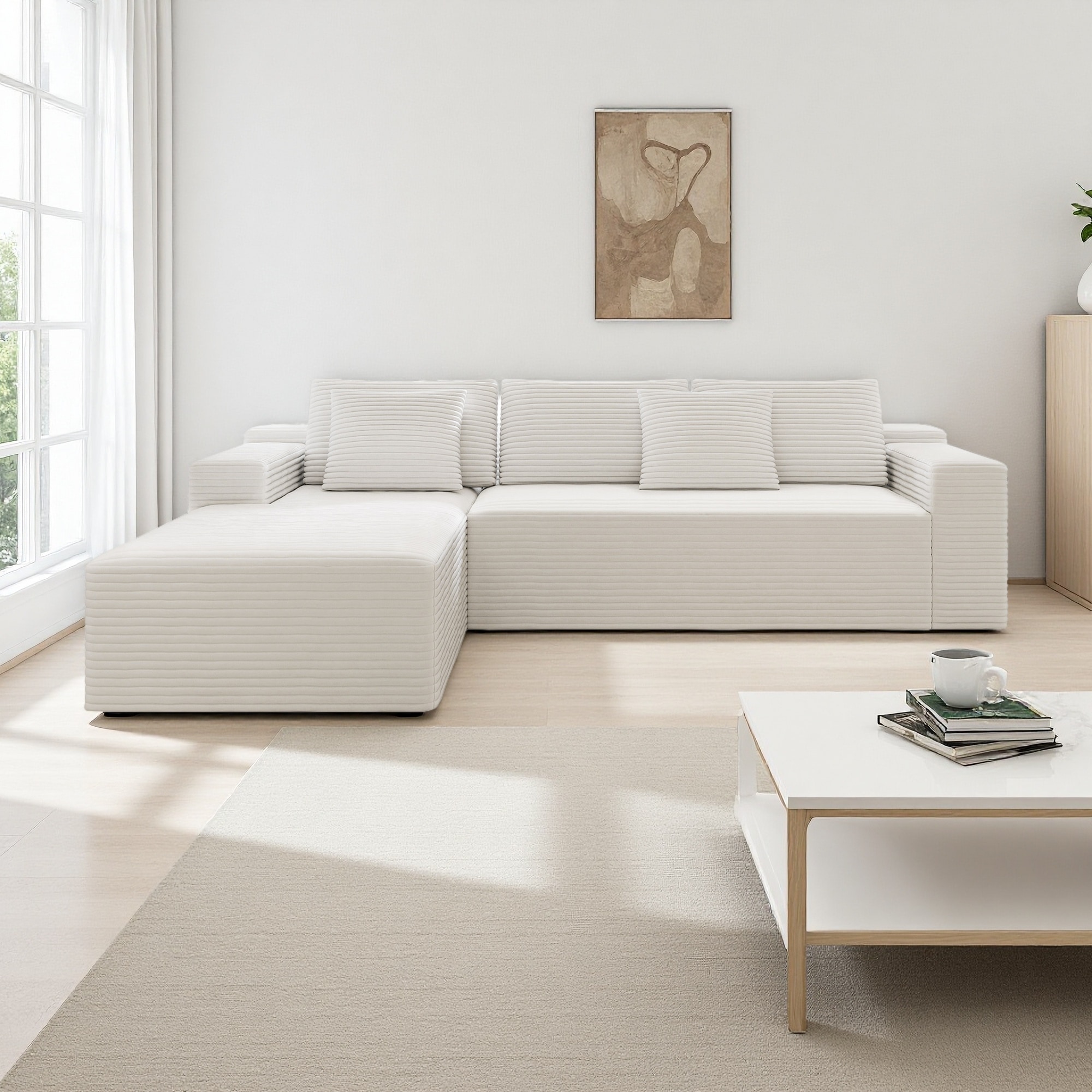 104.3" Corduroy Cloud L-Shaped Sectional Sofa with Chaise and No Assembly Required (Left Facing)
