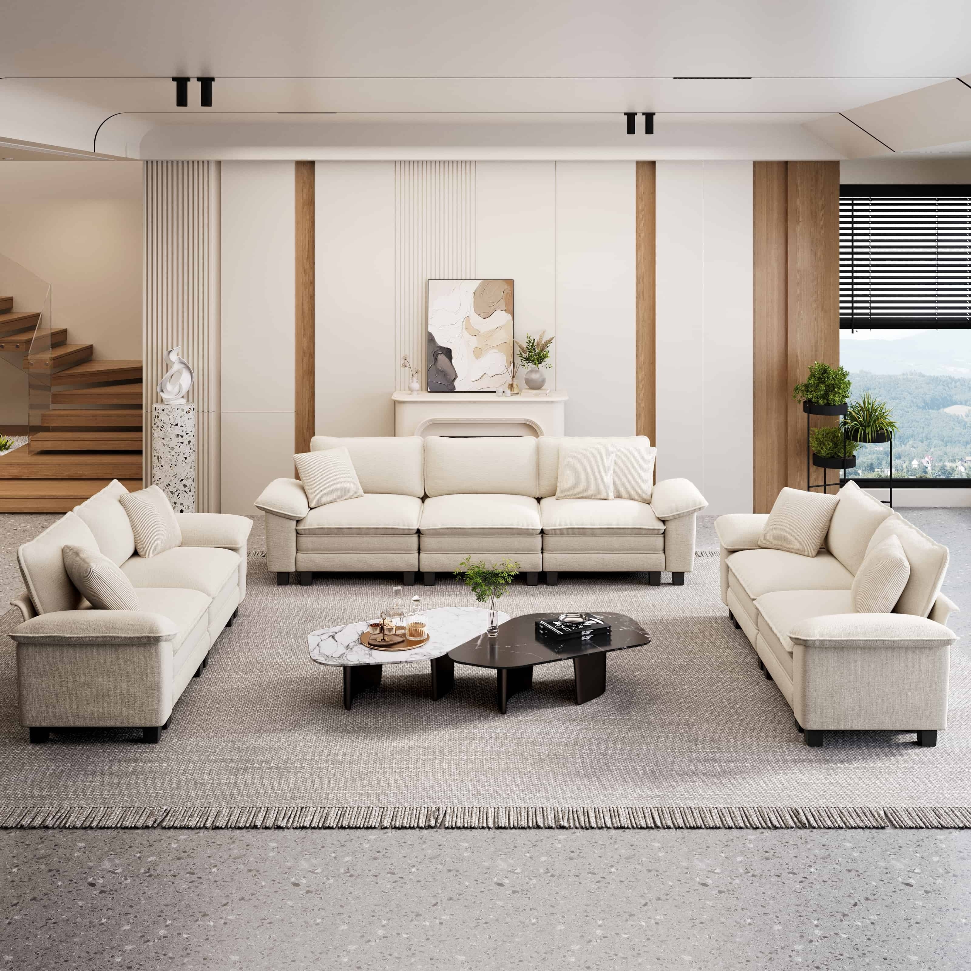 Extra Large 3-Seat Modern Sofa with Waist Pillows & Throw Pillows