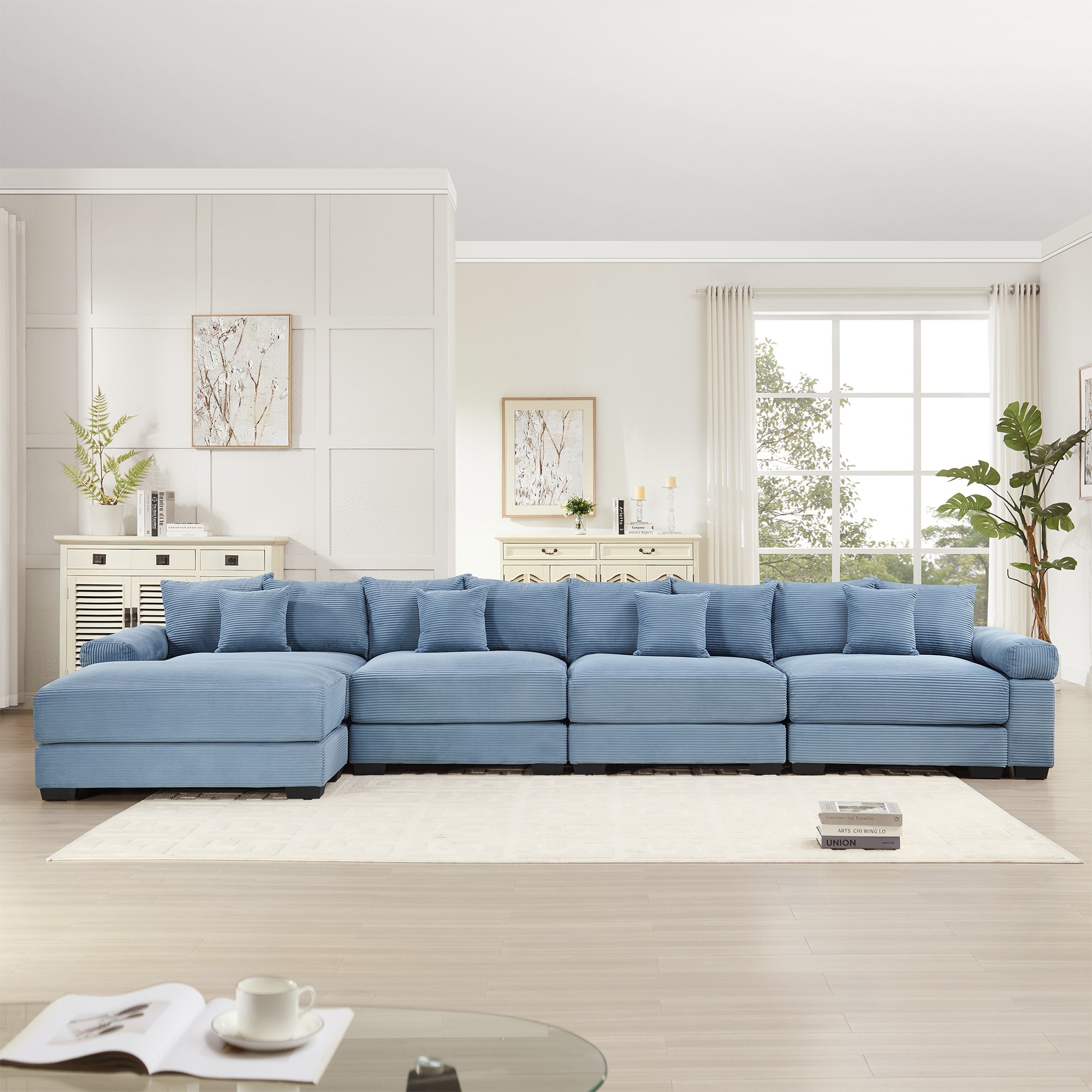 Modern 170" 4 Seater Sectional Sofa with Ottoman, Oversized Modular Corduroy Fabric Cloud Couch with Deep Seat Design