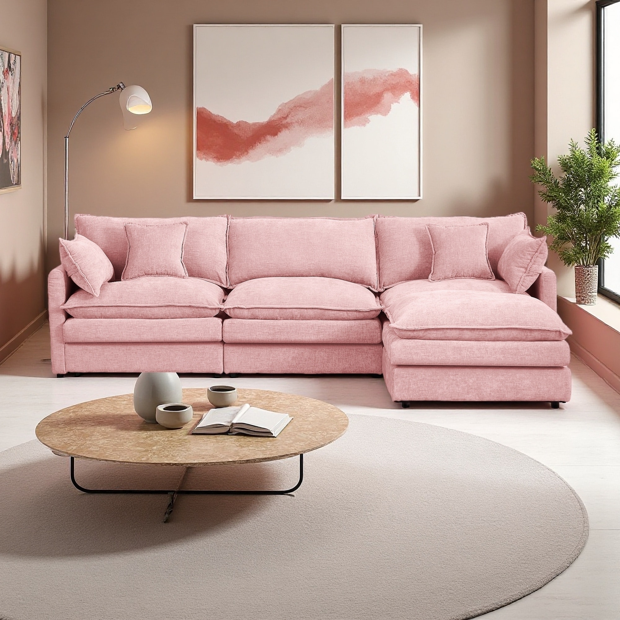 102" Chenille L-Shaped 3-Seat Sectional Sofa with Movable Ottoman & Cloud Cushions