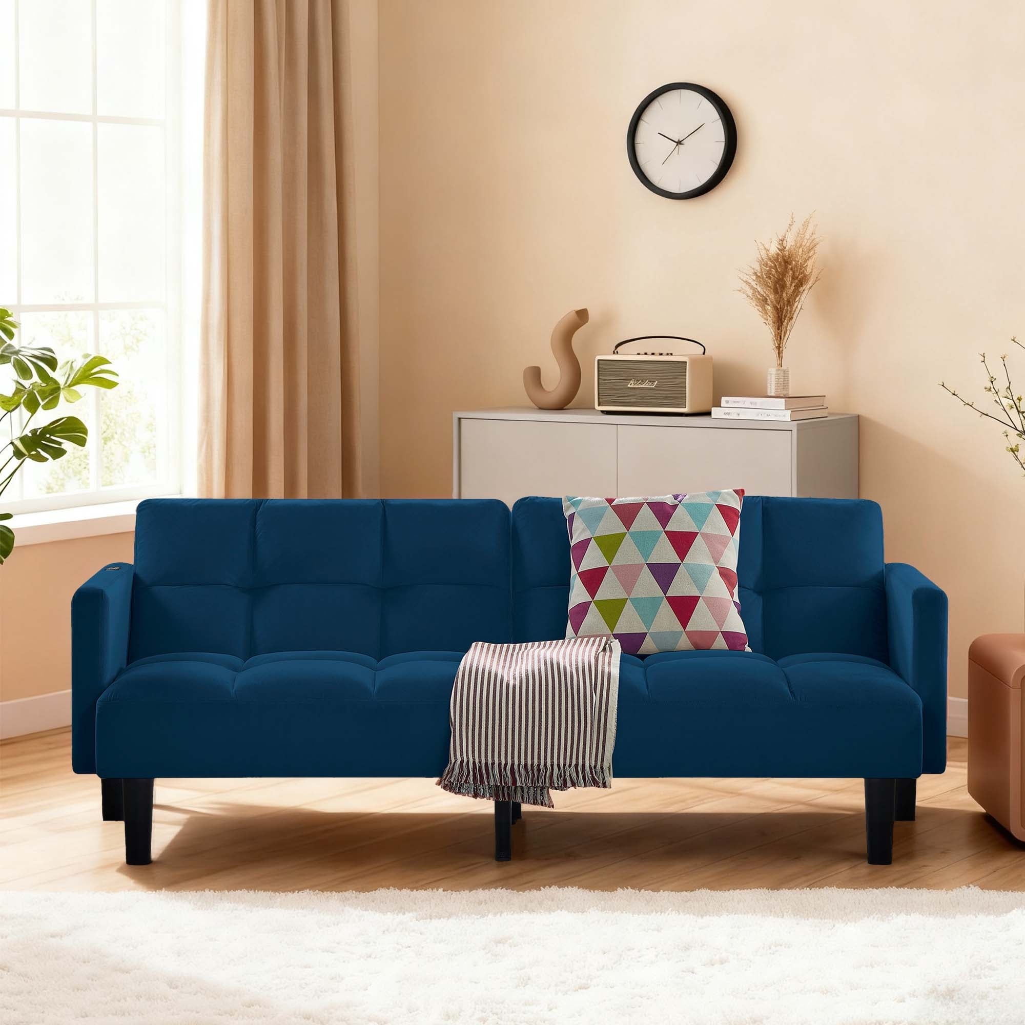 75.5" Velvet Convertible Sofa Bed Tufted Folding Couch With Usb Port Suitable For Living Room, Bedroom, Office