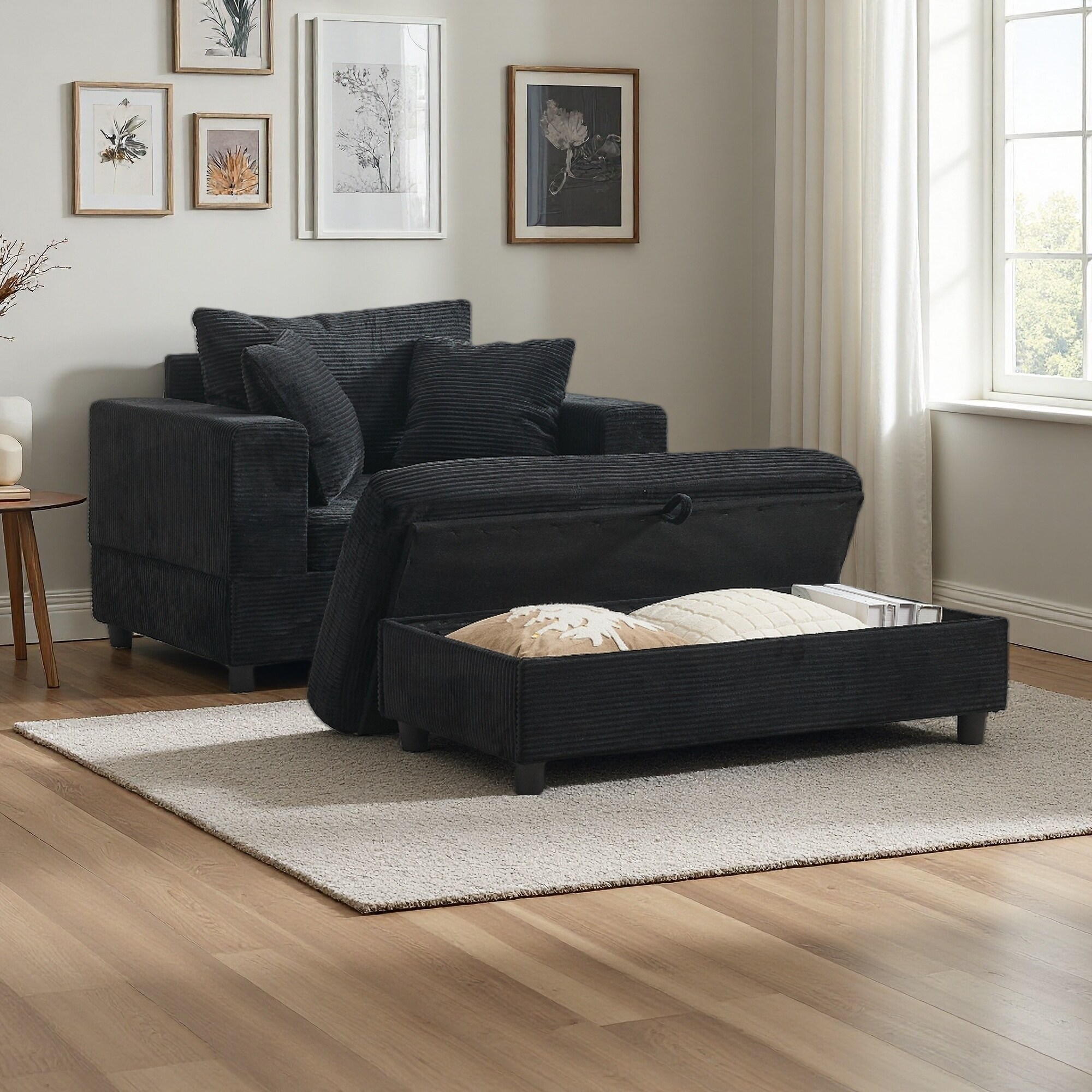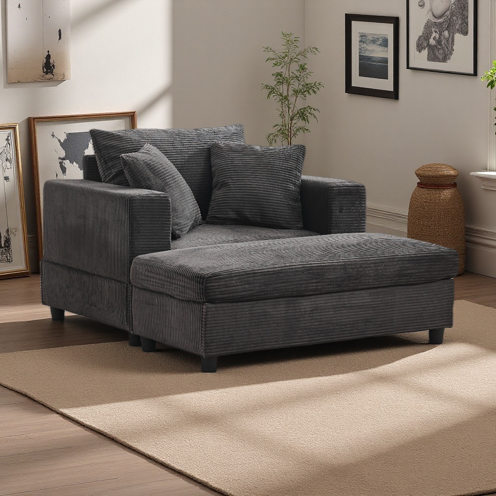54.13" Corduroy Chaise Lounge Chair Sofa with Removable Storage Ottoman and 2 Lumbar Pillows