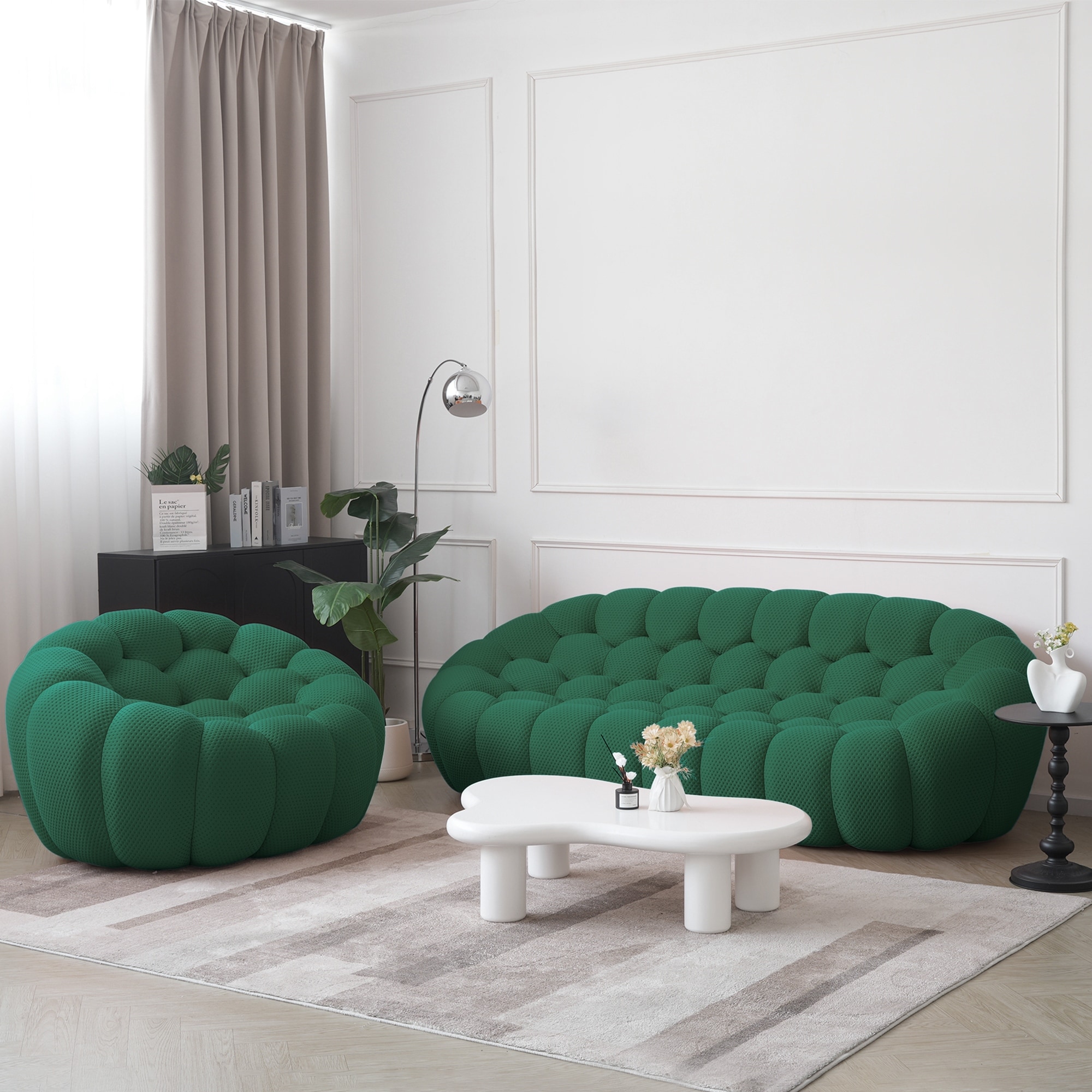 Modern Lazy Sofa Football Shape, Upholstered Loveseat Sofa with 3D Textile Material (1Seat + 3 Seat)