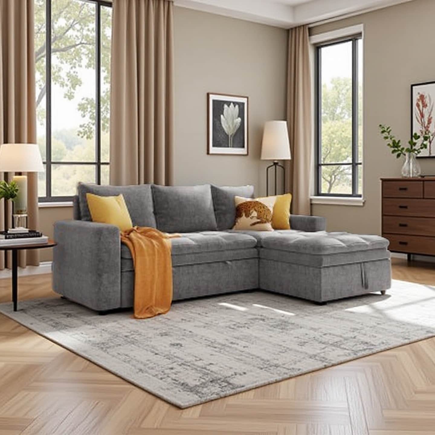 89-Inch L-Shaped Polyester Sectional Sofa Bed With Storage, Reversible Double-Sided Chaise For Living Room