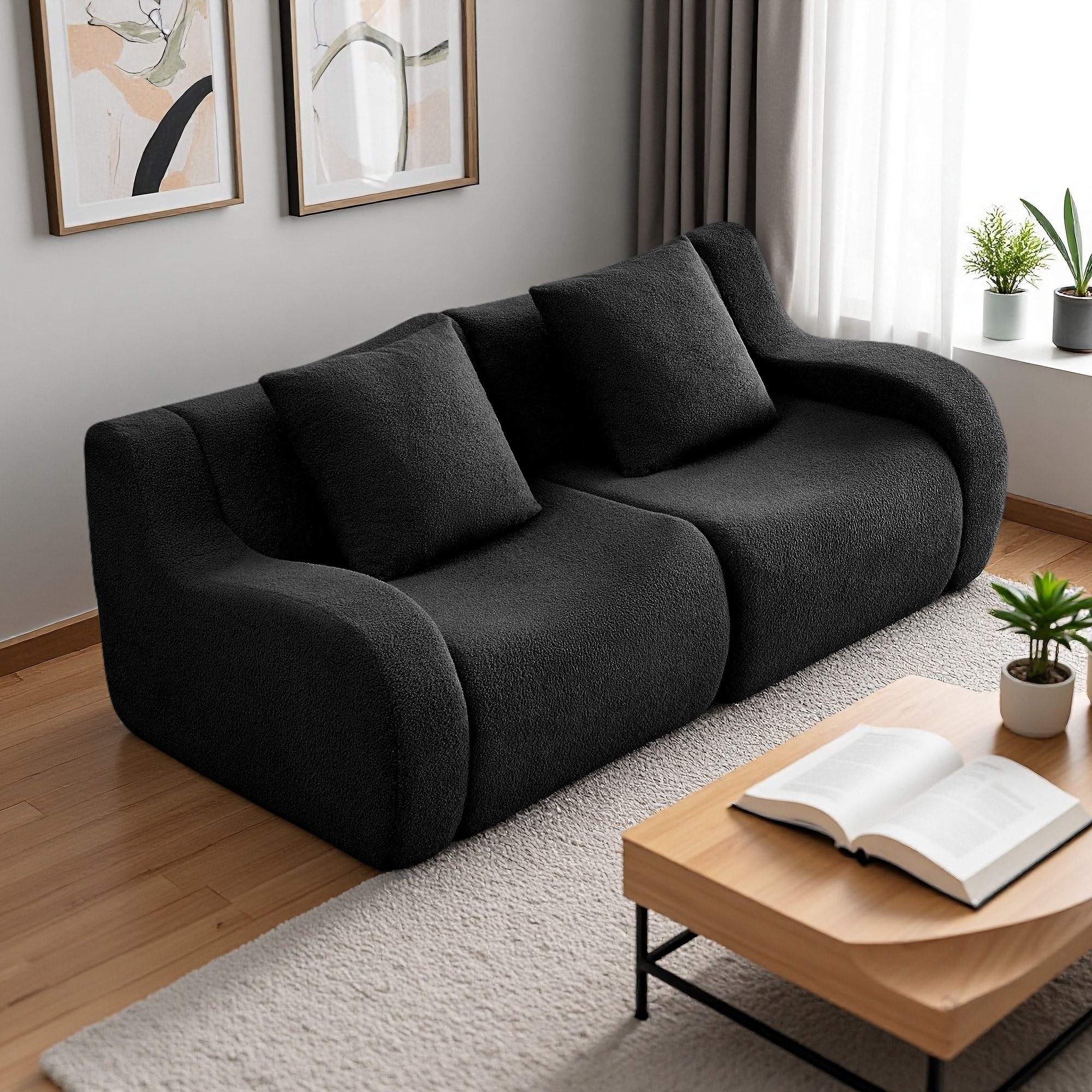 82" Soft Teddy Fabric Boneless Sofa with No Assembly Required, Anti-Slip Design, and 32D High-Density Sponge for Living Rooms