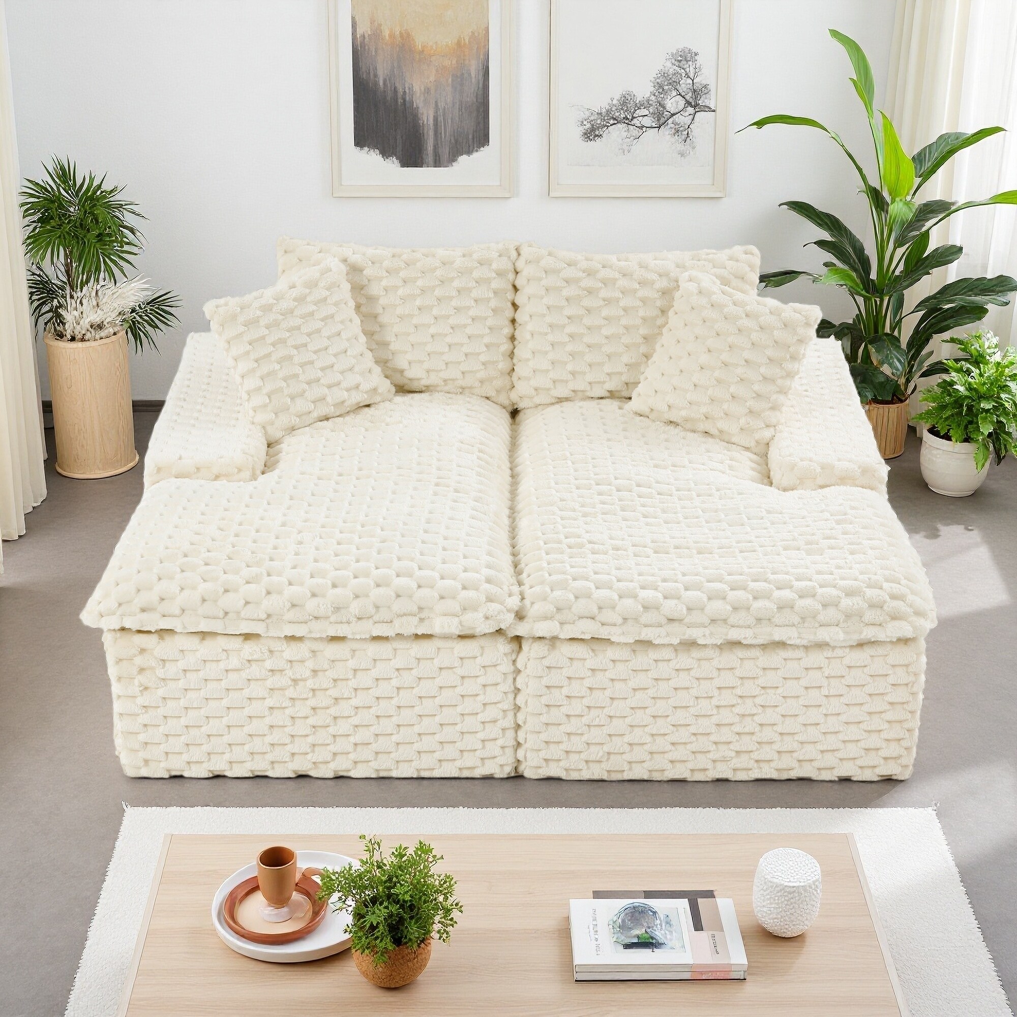 Rossetta 146" Oversized 4-Seater Modern Anti-slip Design Modular Sectional Flannelette Fabric Boneless Deep Sofa