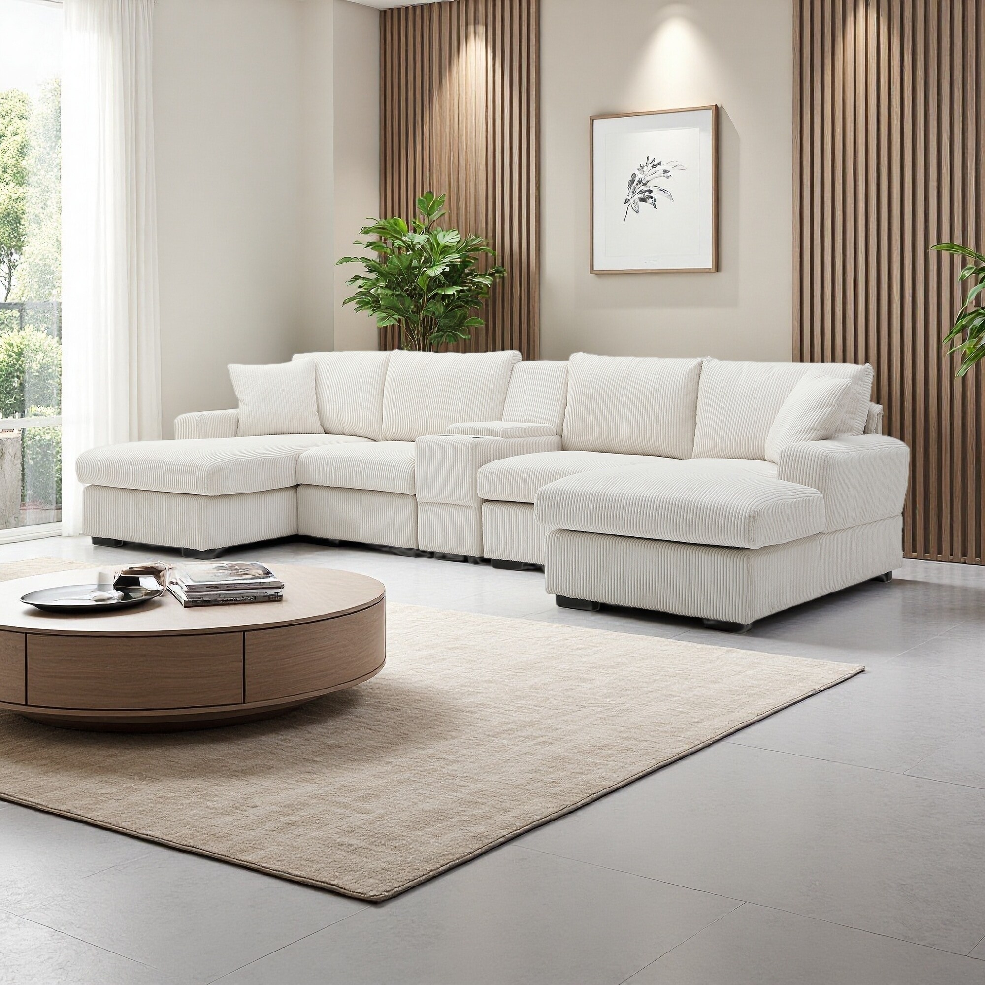 126" U-Shaped Cloud Sectional Sofa with Cup Holder & Double Chaise