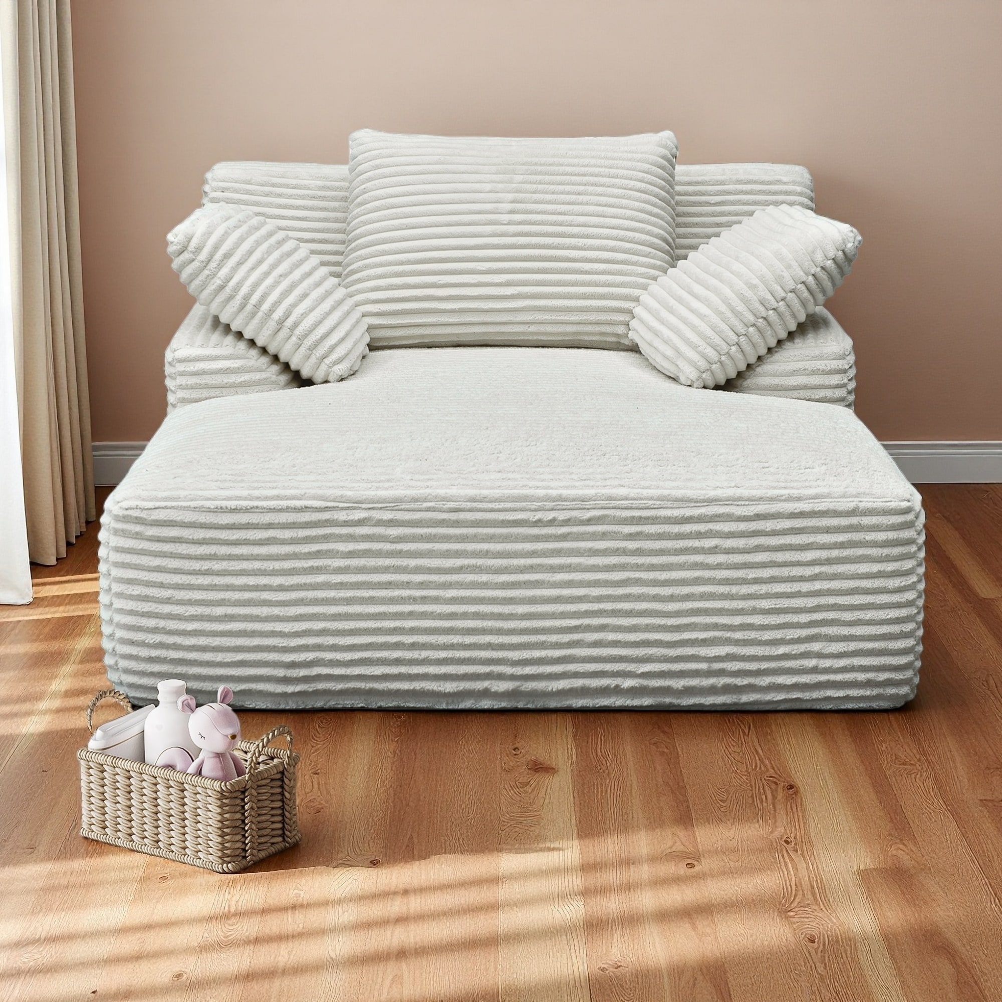 Versatile Chaise Lounge Couch Floor Standing Sofa Chair Turtle Fleece Single Accent Chiar with Pillows and Streamlined Armrests