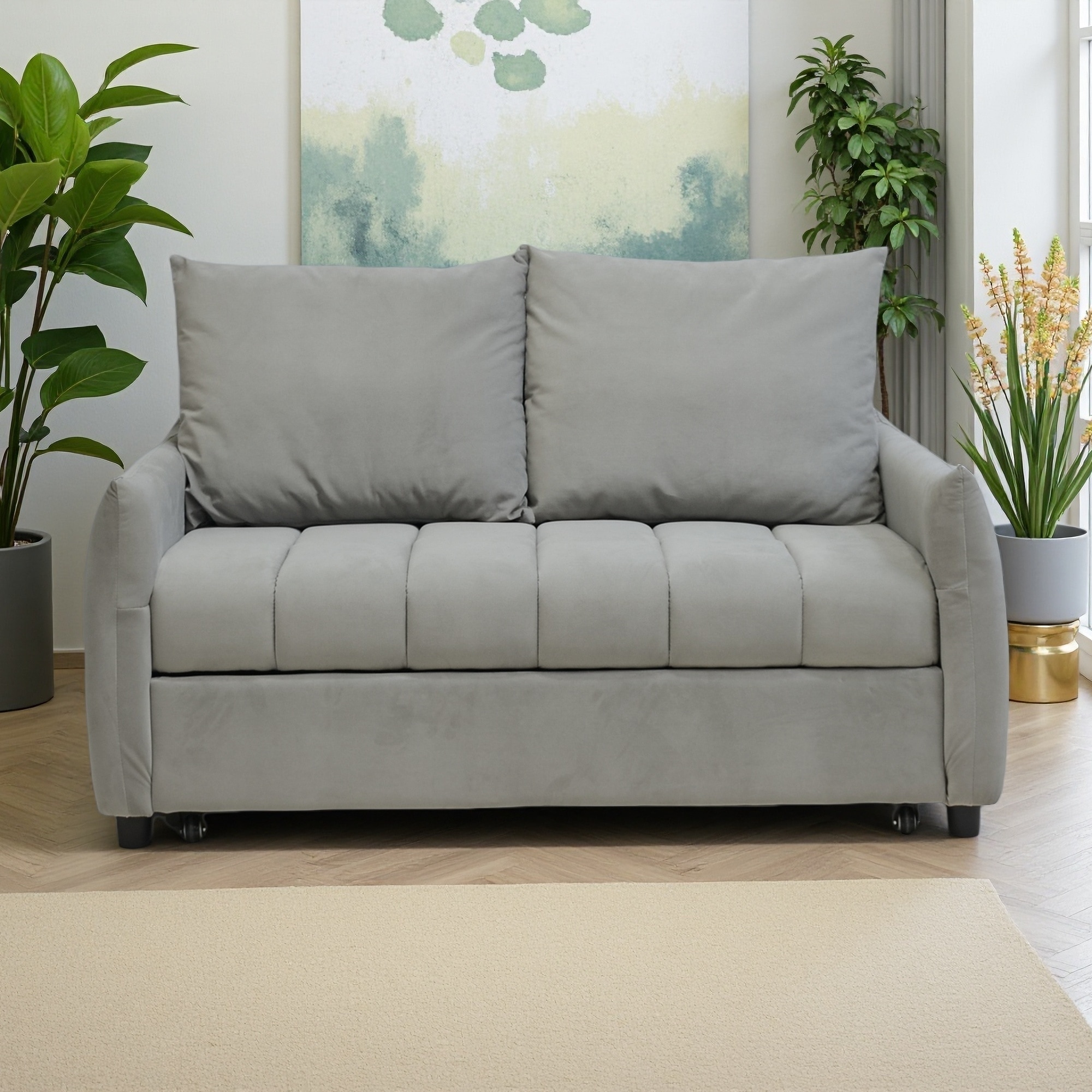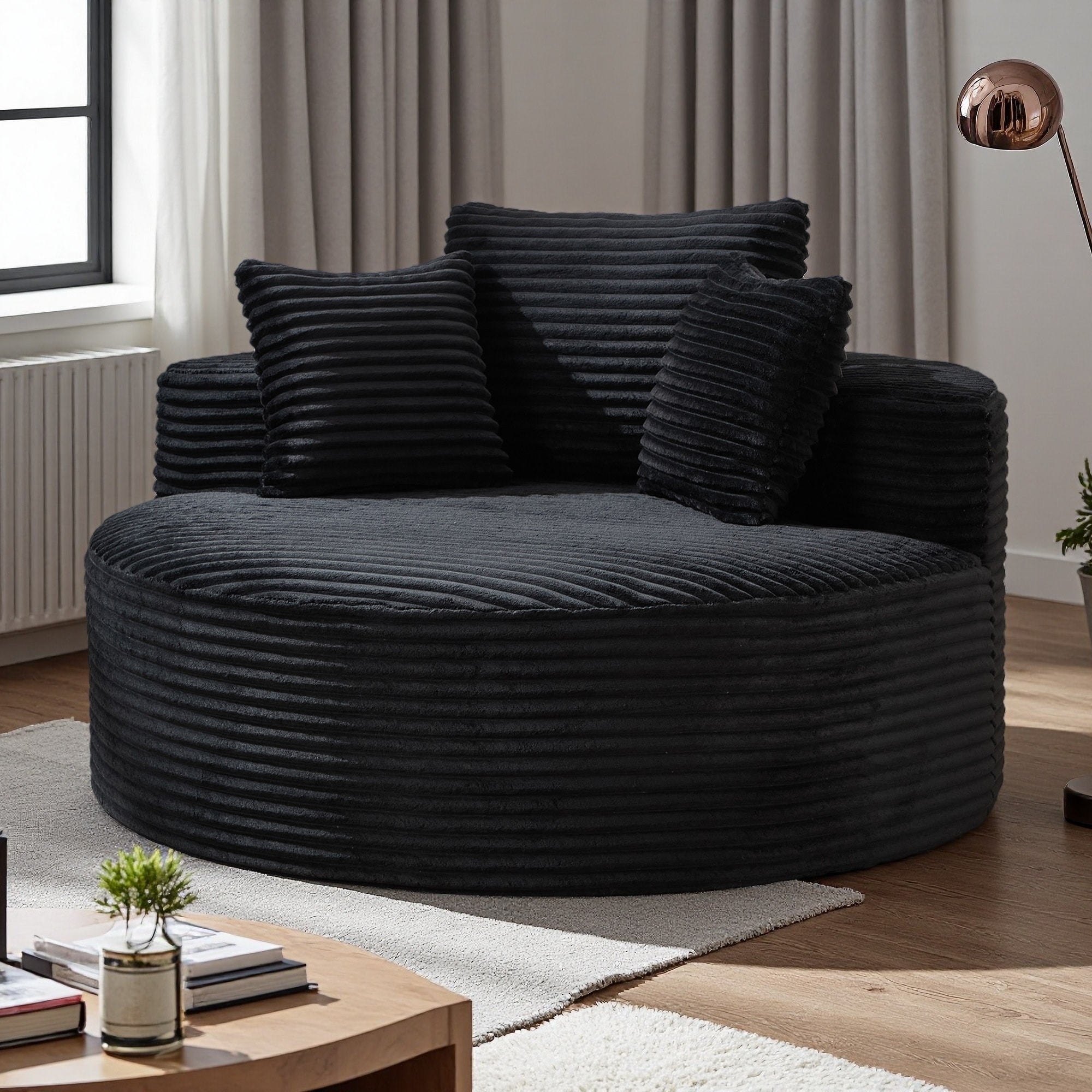 55.9" Round Sofa Bed with Memory Foam, Breathable Fabric, Modular Sectional Couch for Living Room, Couch with Three Pillows