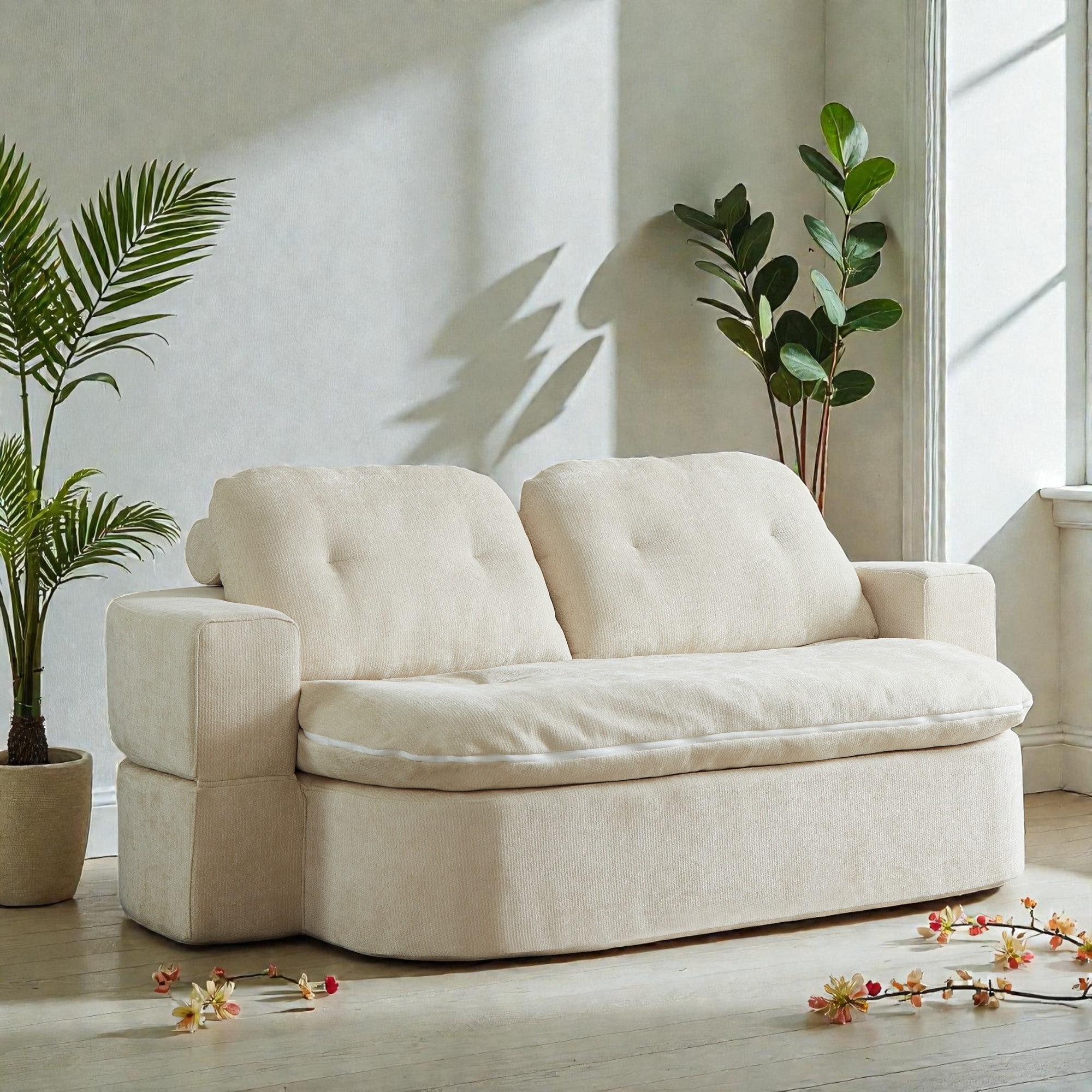 Indoor Oversized Chaise Lounge, Wide Boneless Corduroy Loveseat with 4 Pillows