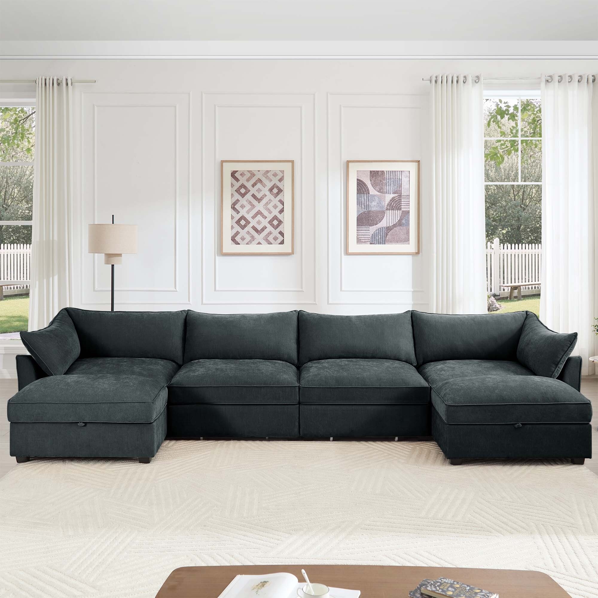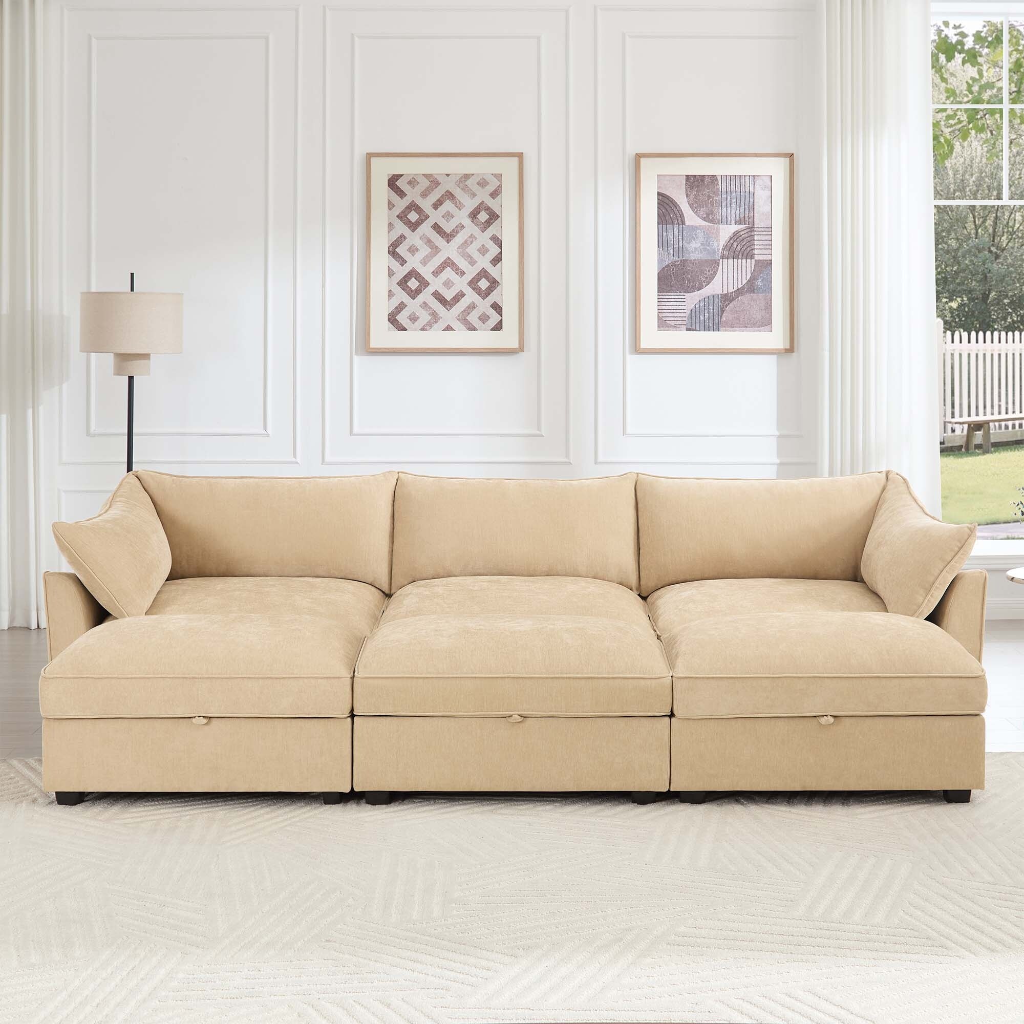 165" Corduroy Modular Cloud Sectional Sofa with Deep Seats, Cup Holders and No Assembly Required (6-Seater)