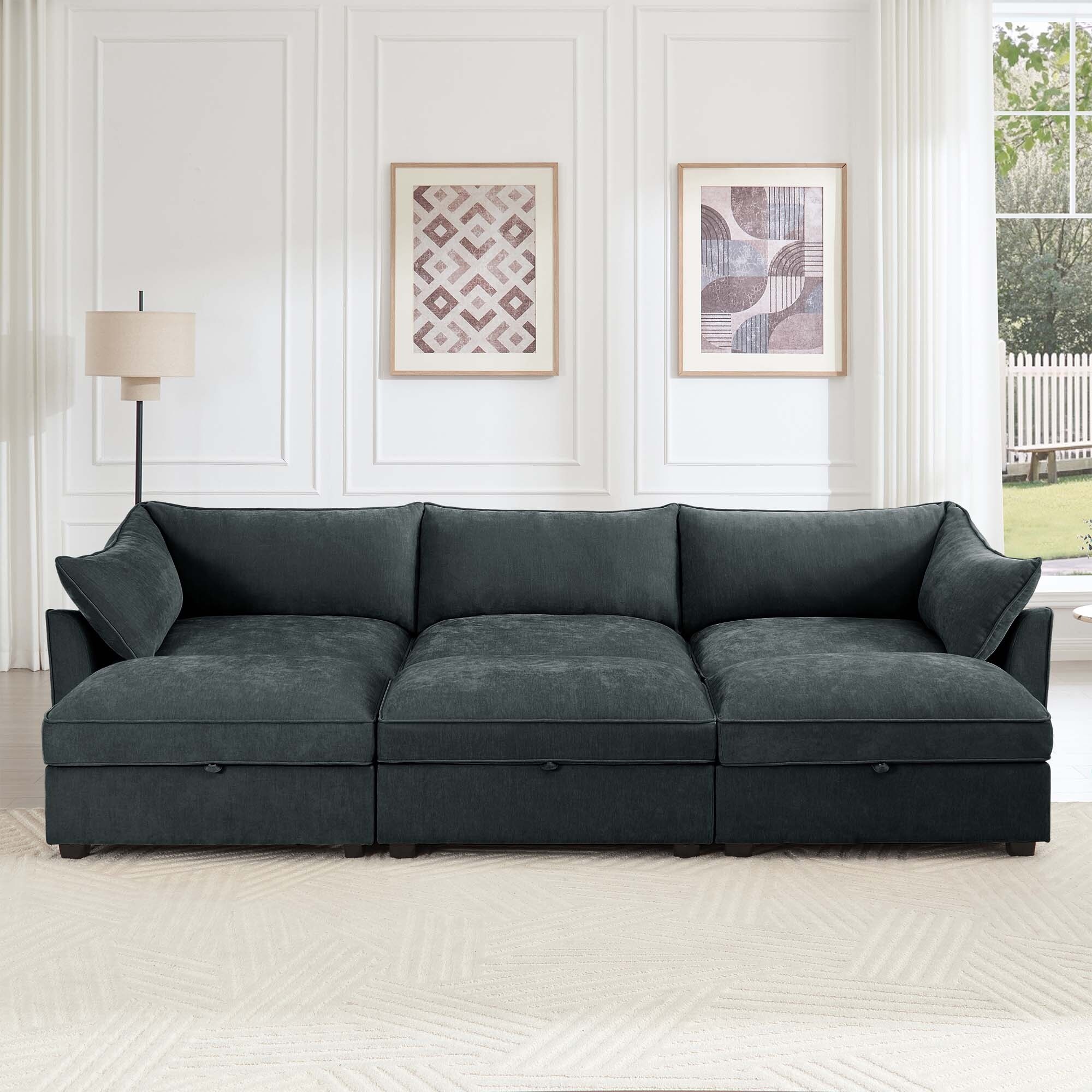 Modern Chenille Sofa with Pull-out Drawer Under Each Seat