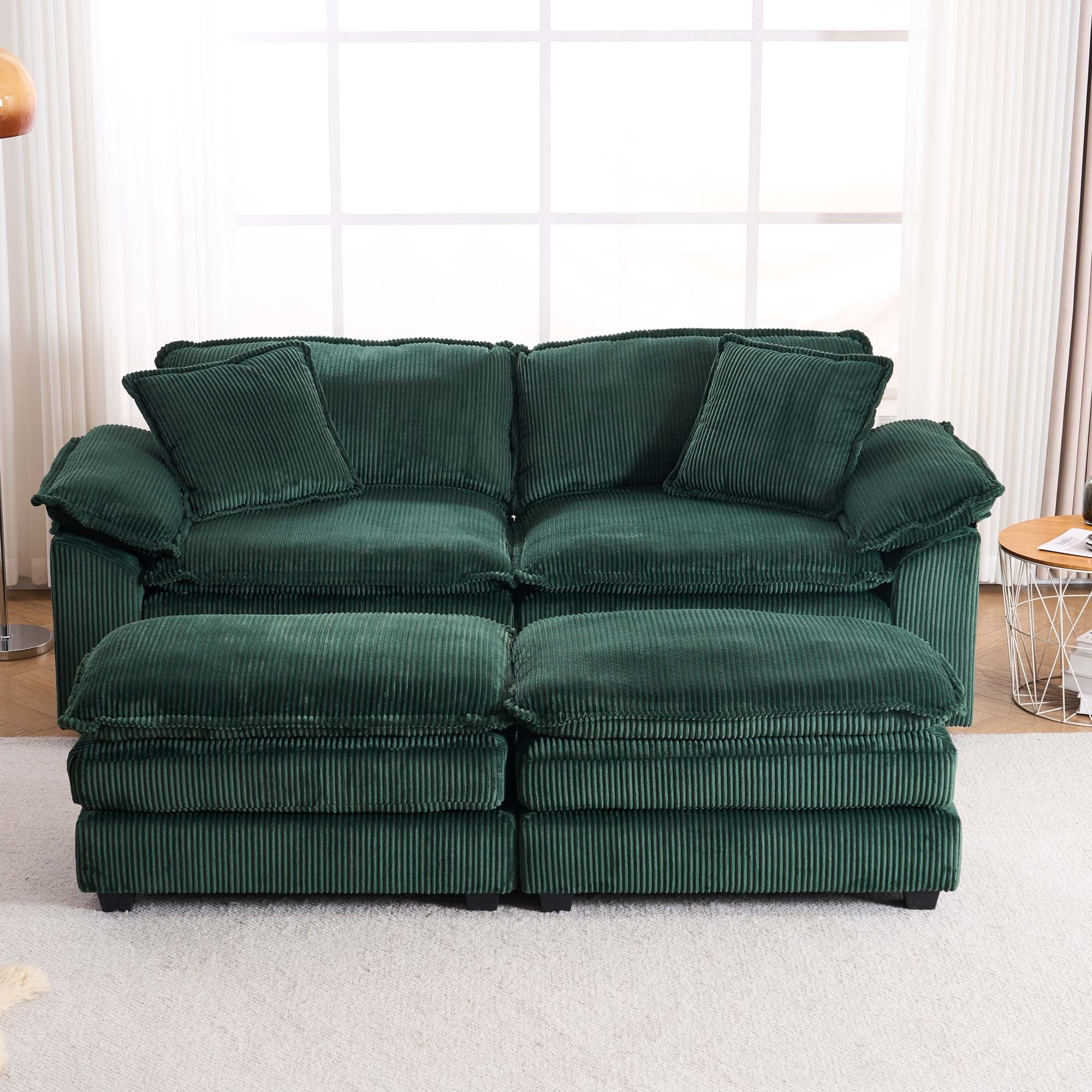 84.6" Corduroy Two-Seater Sofa with 2 Ottomans