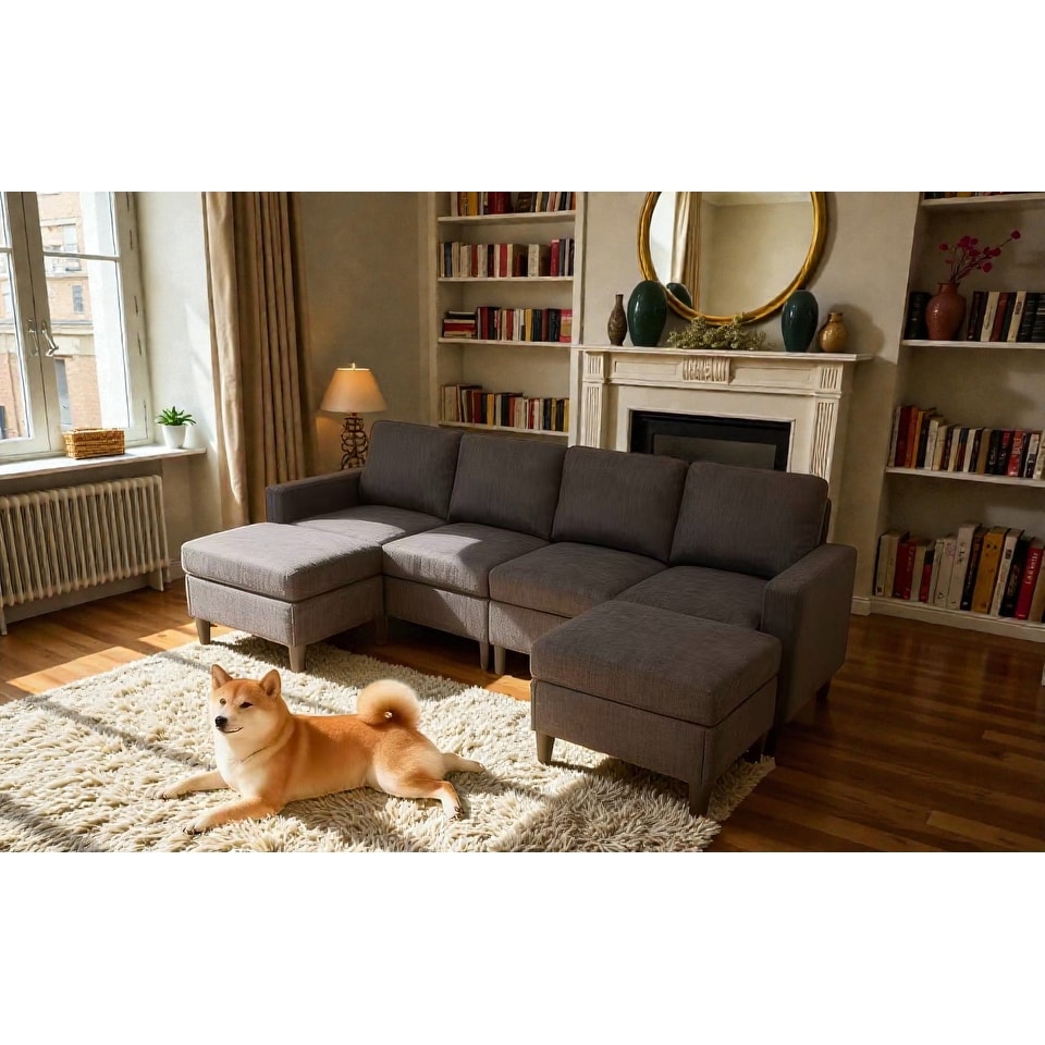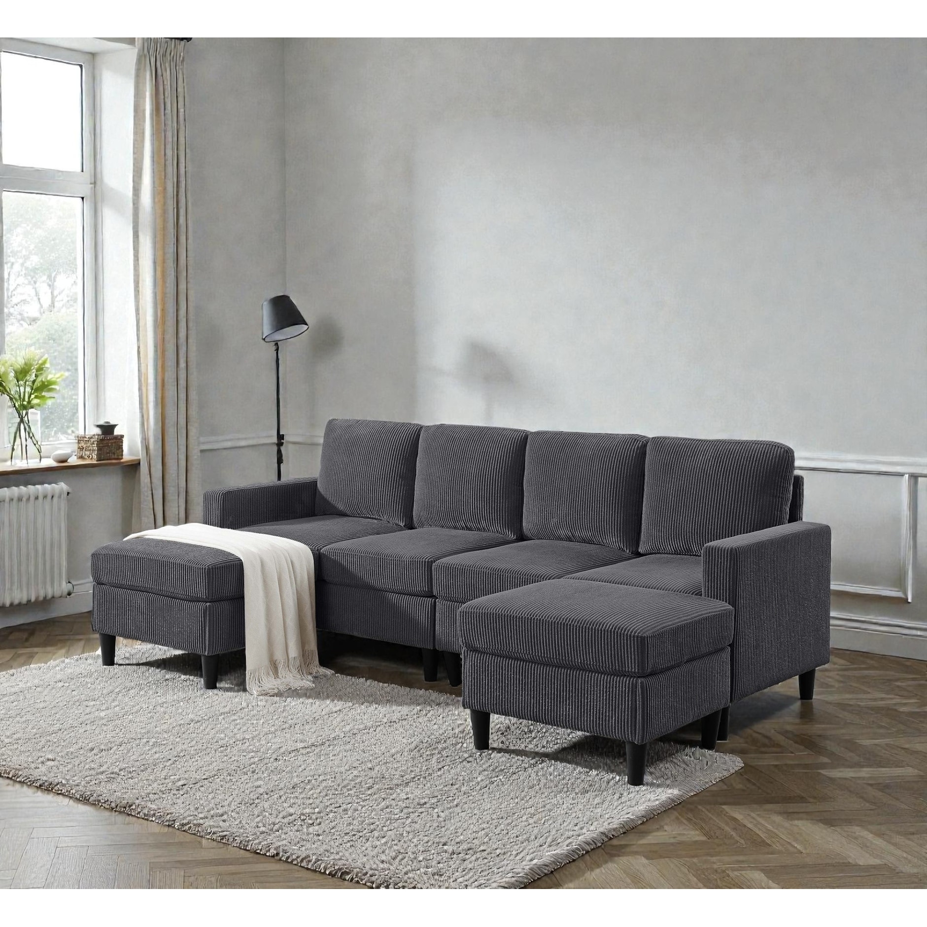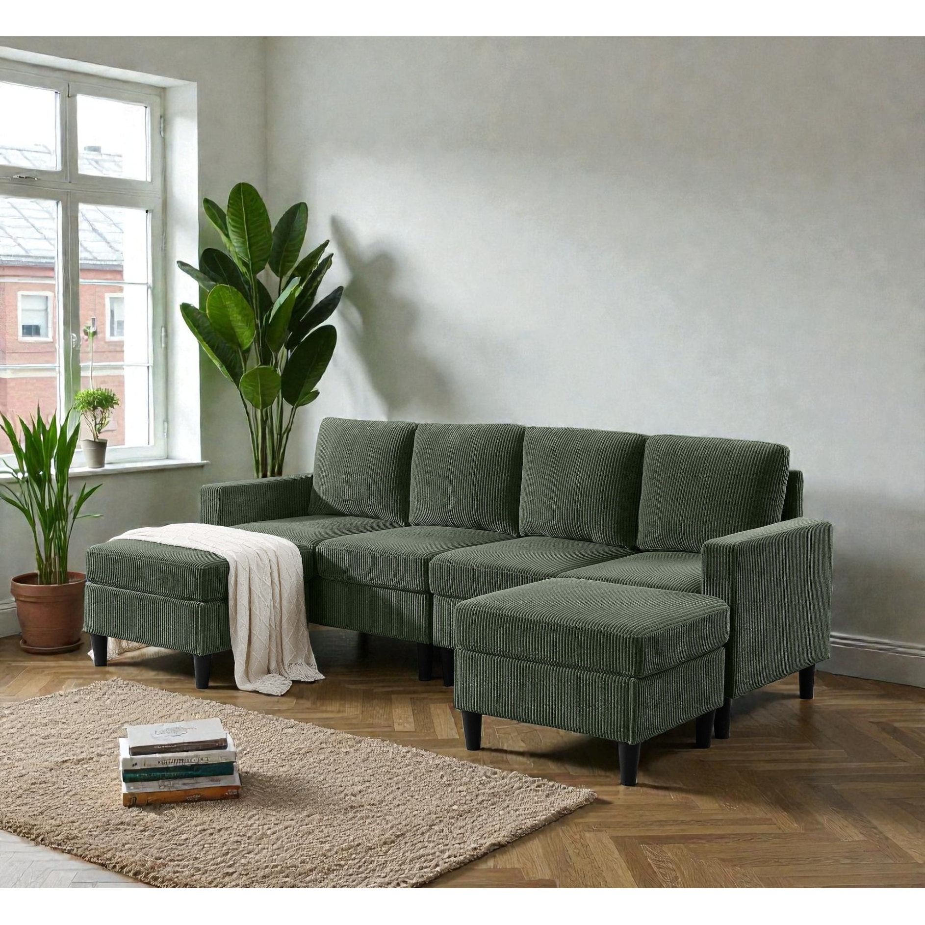 Corduroy Upholstered Modular Sectional Sofa with 2 Moveable Ottomans and Tall Legs for Flexible Seating Layouts