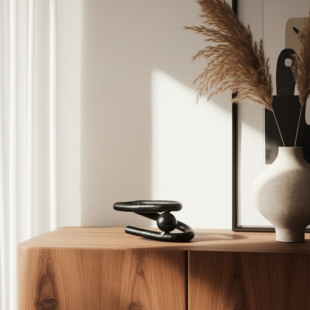 Metal Aluminum Decorative Object Modern Abstract Sculpture - 3" Black - 8" x 3.5" x 2.5"