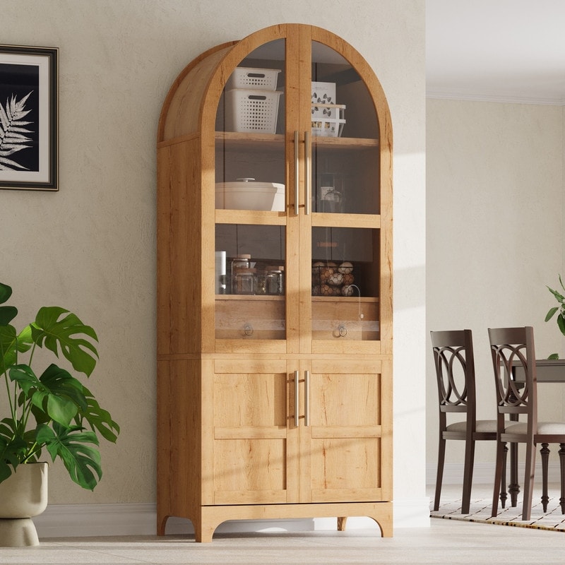 71" Tall Arched Kitchen Pantry Cabinet with Adjustable Shelves and Hidden Drawer for Stylish Storage Solutions