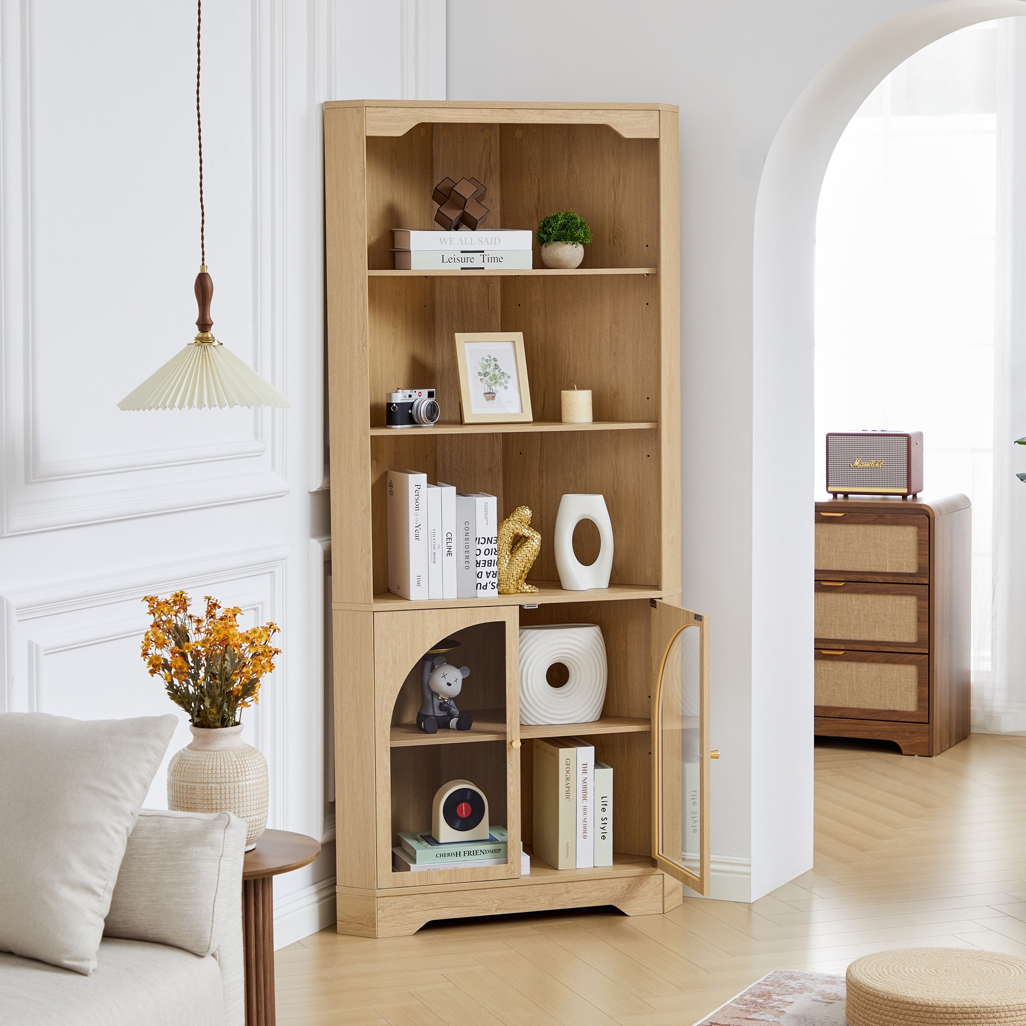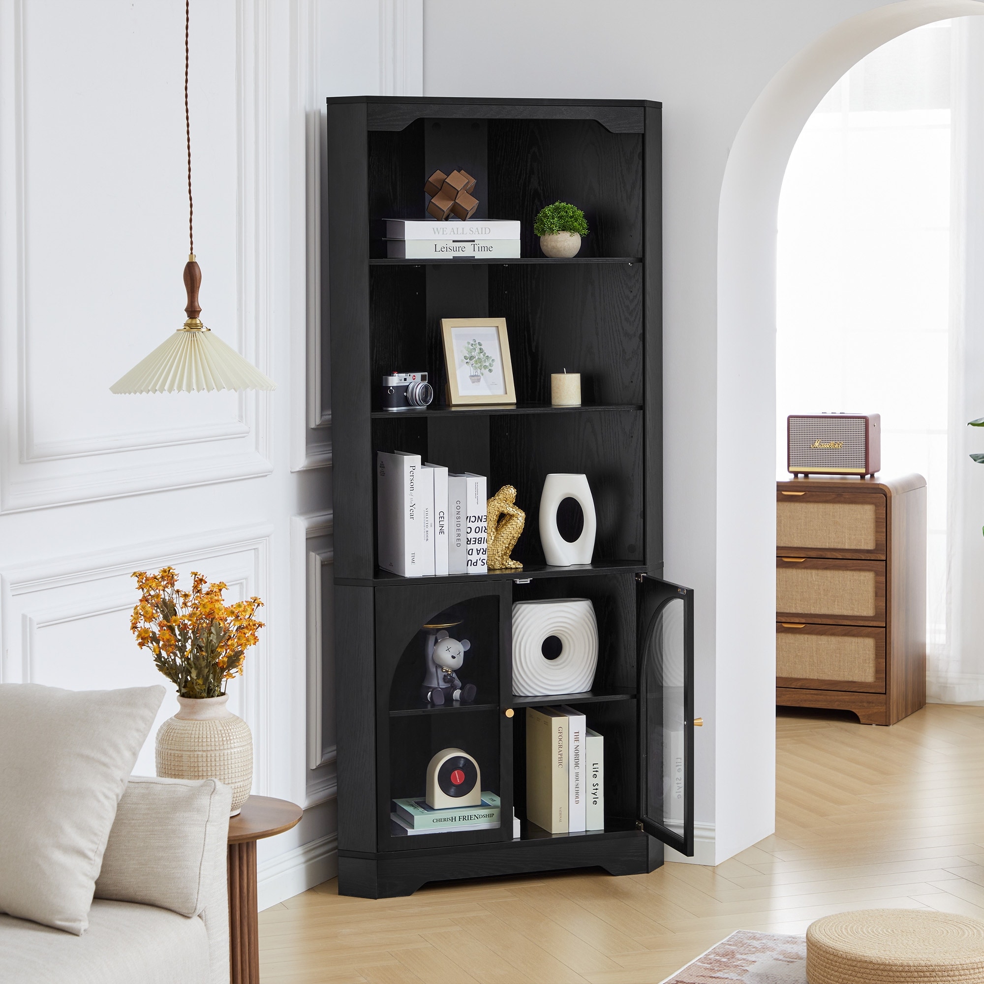 Right-angle corner storage cabinet
