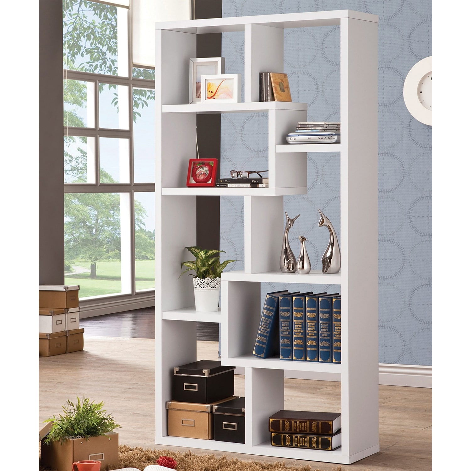 Multiple Geometric Rectangular 10-shelf Bookcase in White