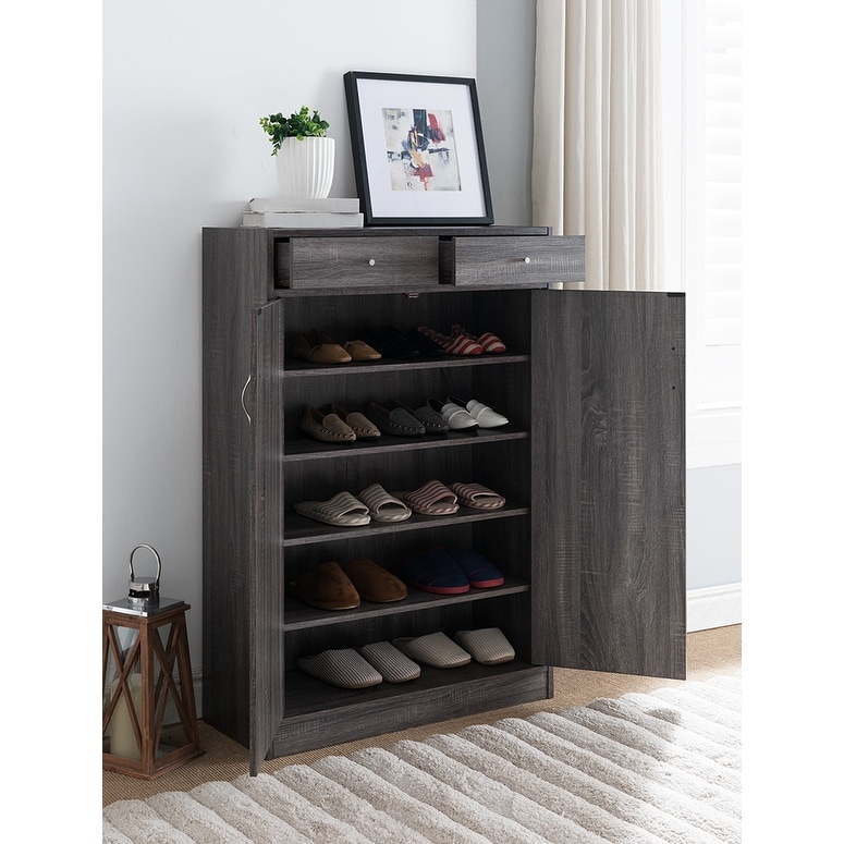 Shoe Cabinet, Two Door Storage Cabinet With Two Drawers, Fits 15 Pair Of Shoes