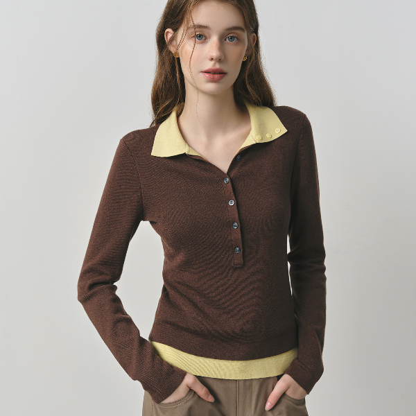 New Autumn Women's Knitted Sweater, Vintage Cozy Cable Knit Top, Color Block Barenia Style, Fake Two Pieces Turn Collar navy Blue xl