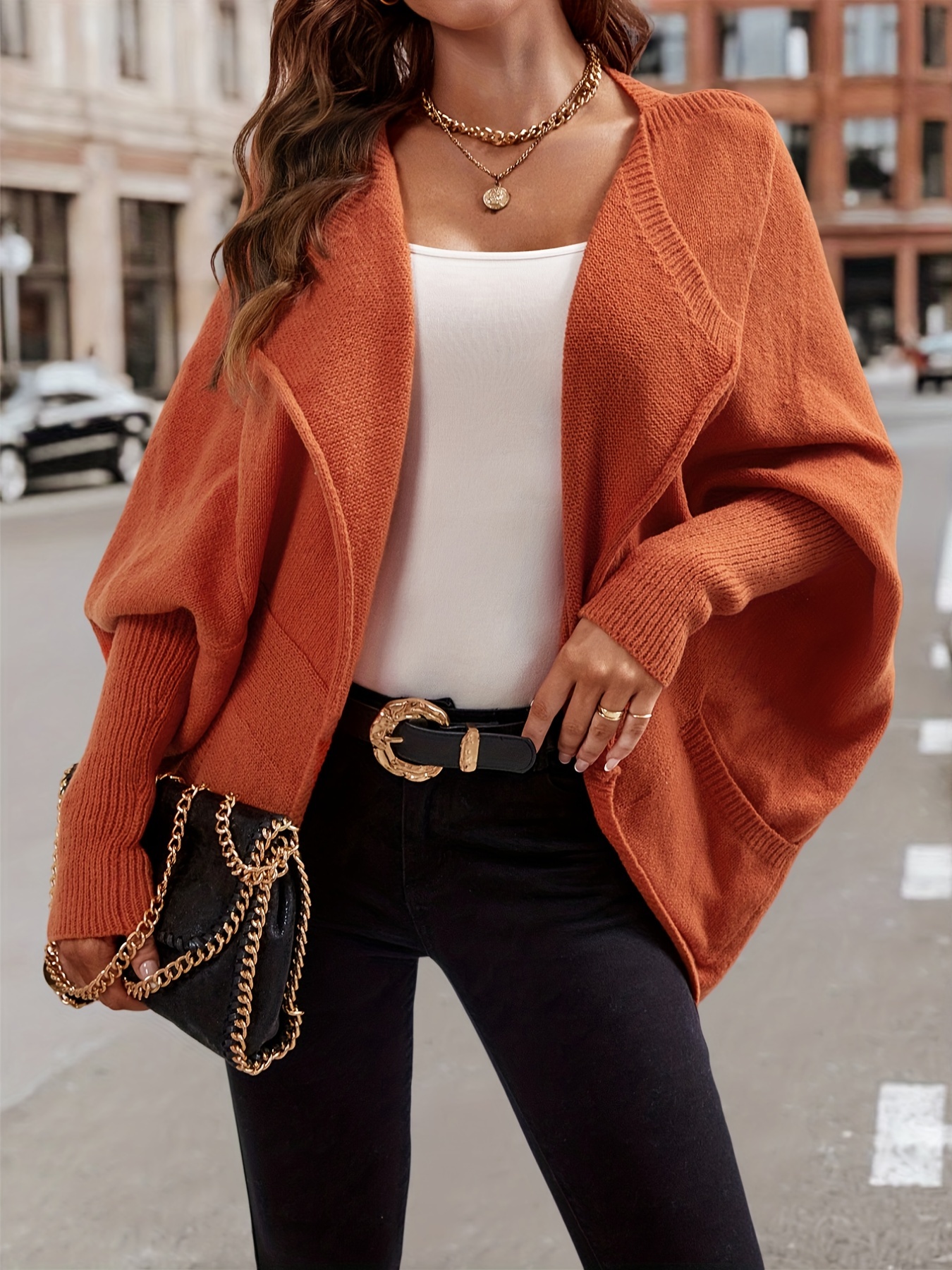 Solid Pocket Knitted Cardigan Casual Batwing Sleeve Knit Outwear For Fall & Winter Women's Clothing Solid Pocket Knitted Cardigan Casual Batwing Sleeve Knit Outwear For Fall & Winter Women's Clothing Orange Red XXL(14)