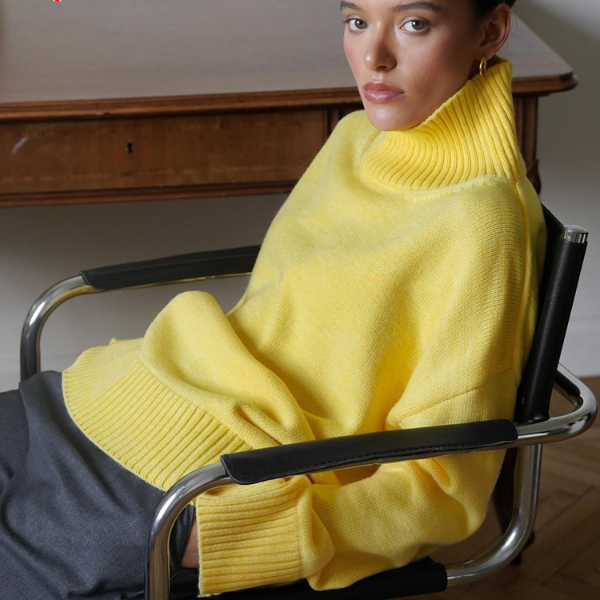 Autumn Winter Women Sweater, Fashion Warm Bottoming Shirts, Half High Collar Knitwear Solid Long Sleeve Pullovers lemon Green s