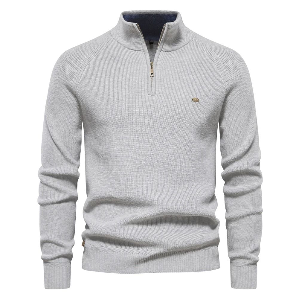 Mens Cotton Zip Cardigan High Collar Knitted Sweater l navy Blue