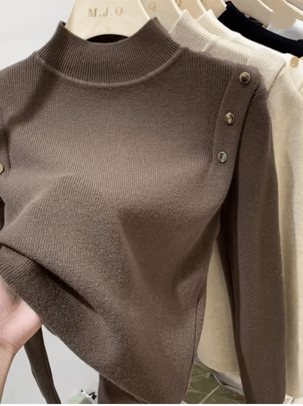 CozyCharm Womens Knitted Turtleneck Sweater With Button Detail black
