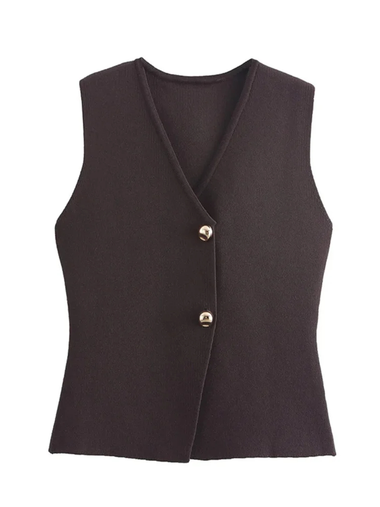 Women Causal Sleeveless V neck Slim Knit Cardigan Autumn New High Street Tops coffee medium(6)