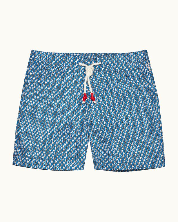 Mid-Length Geometric Print Ripstop Drawcord Swim Shorts - Blue - Orlebar Brown Beachwear