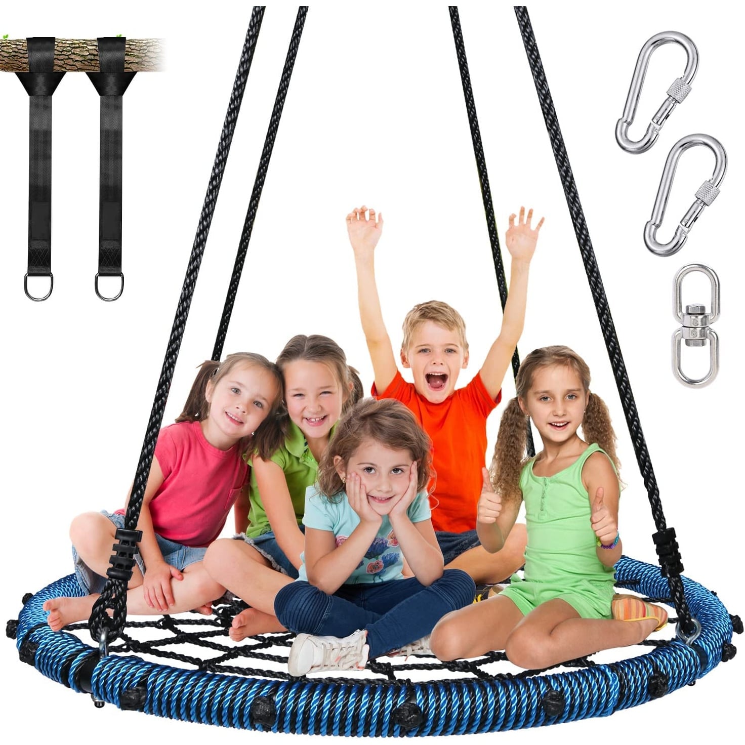 Trekassy 45'' 750lbs Spider Web Tree Swing for Kids Adults with Swivel, 2pcs Tree Hanging Straps