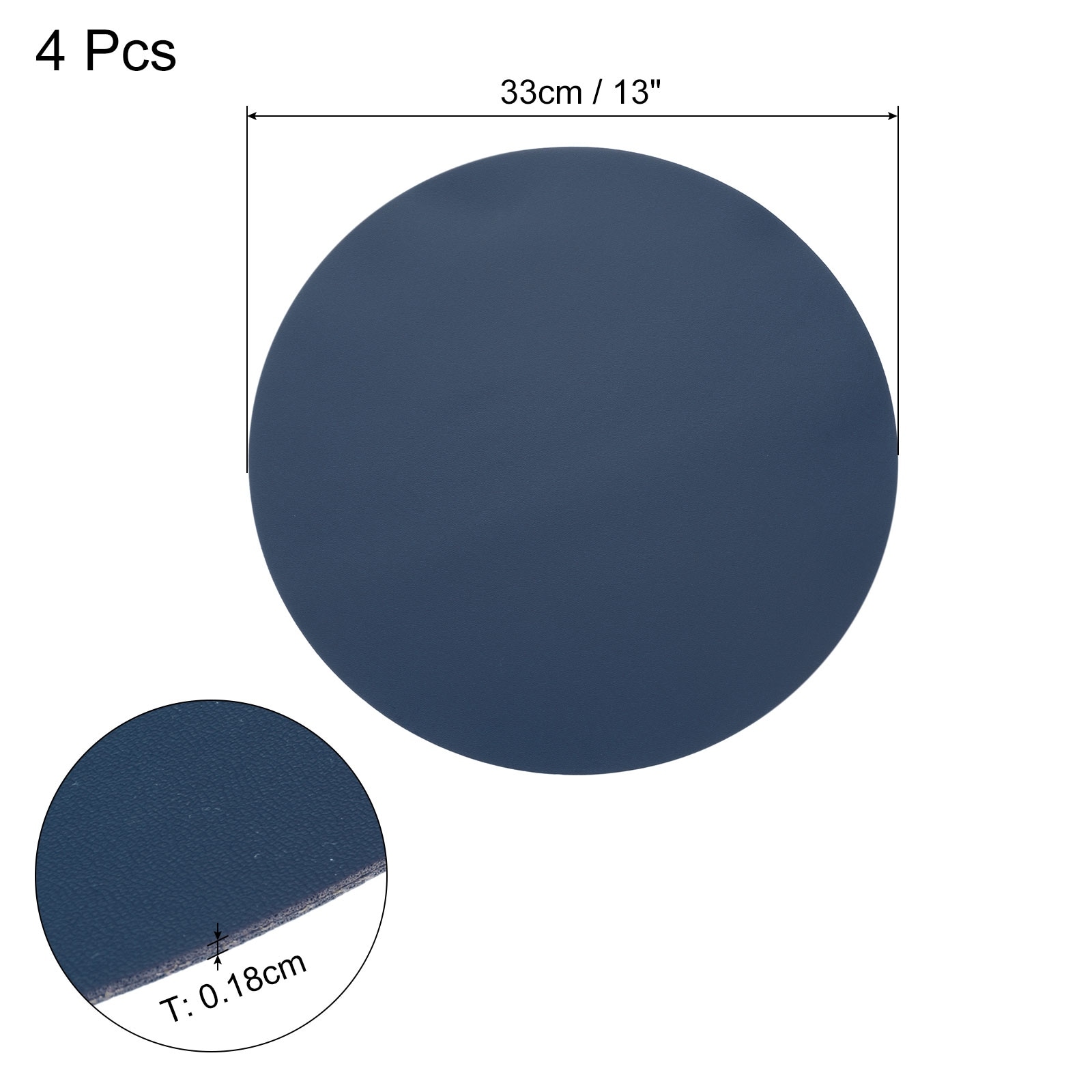 4Pcs Faux Leather Placemats for Dinner Tabletop, Round Mats