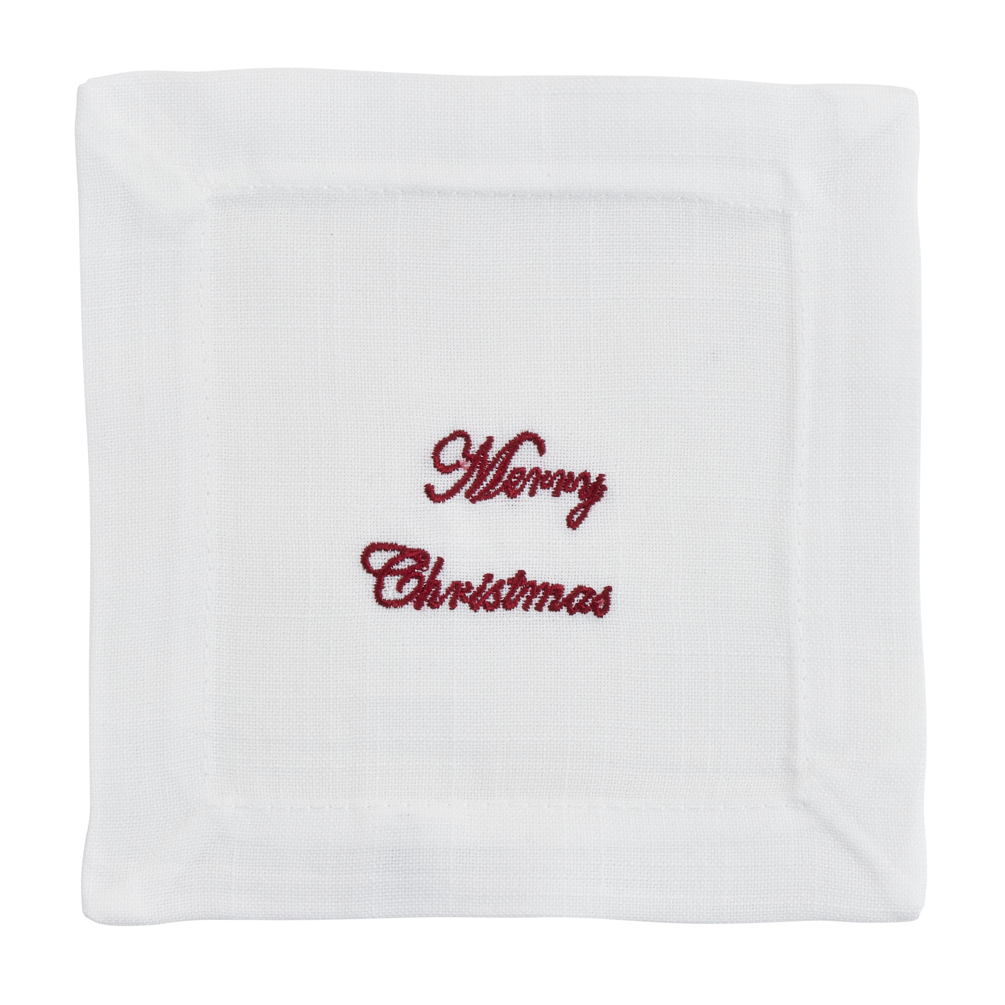 Embroidered Cocktail Napkins With Merry Christmas Design (Set of 12) - 6"x6"