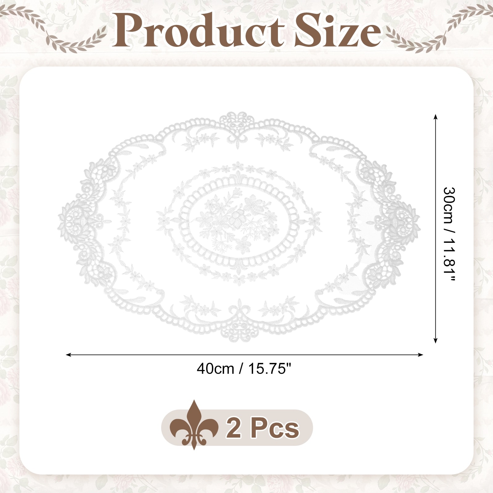 2 Pcs Lace Placemats, 15.7x6.2Inches Vintage Table Doilies Oval Embroidered Crochet Lace Dolly Cup Mat for Home Decor