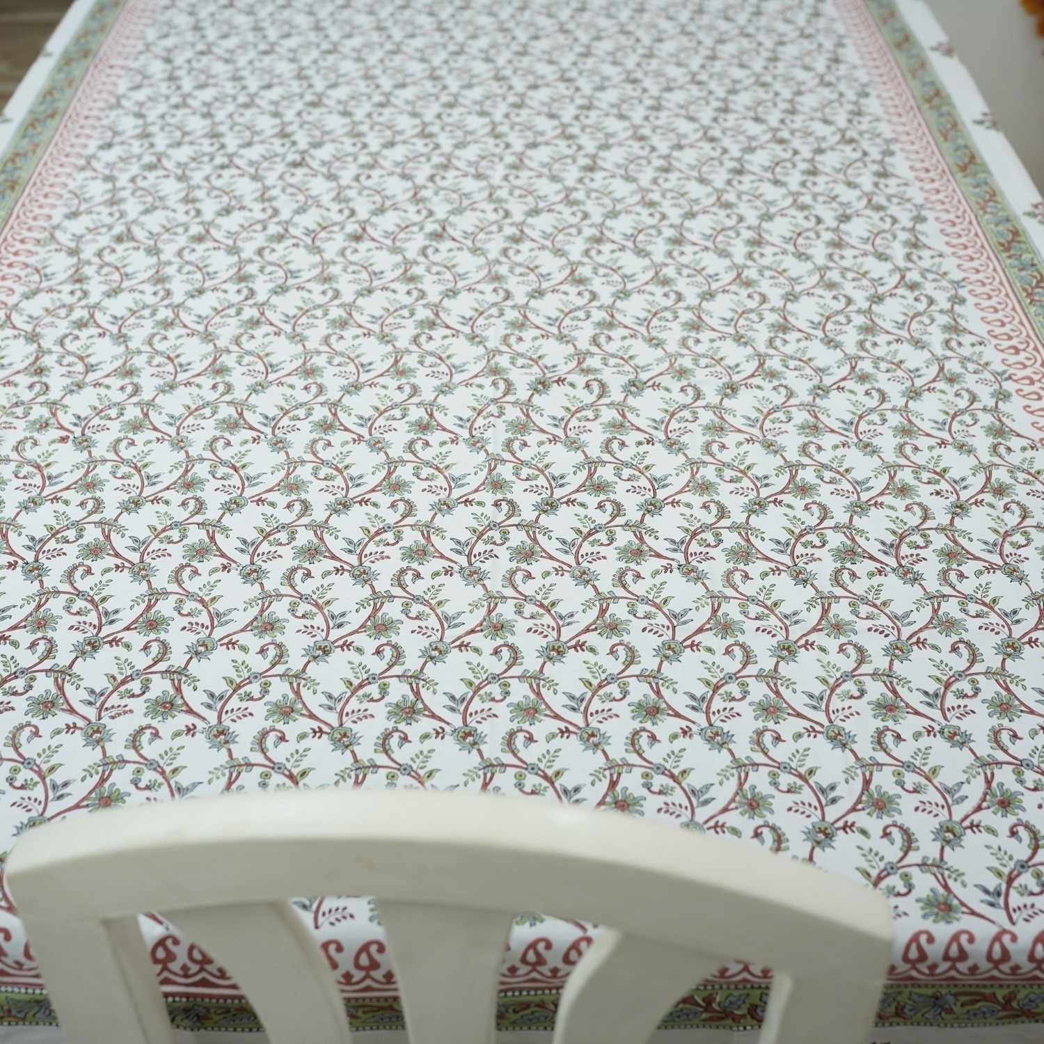 Fabdivine Floral Cotton Table Cover or Cloth Handmade Block Print for Dining & Home Décor Accent