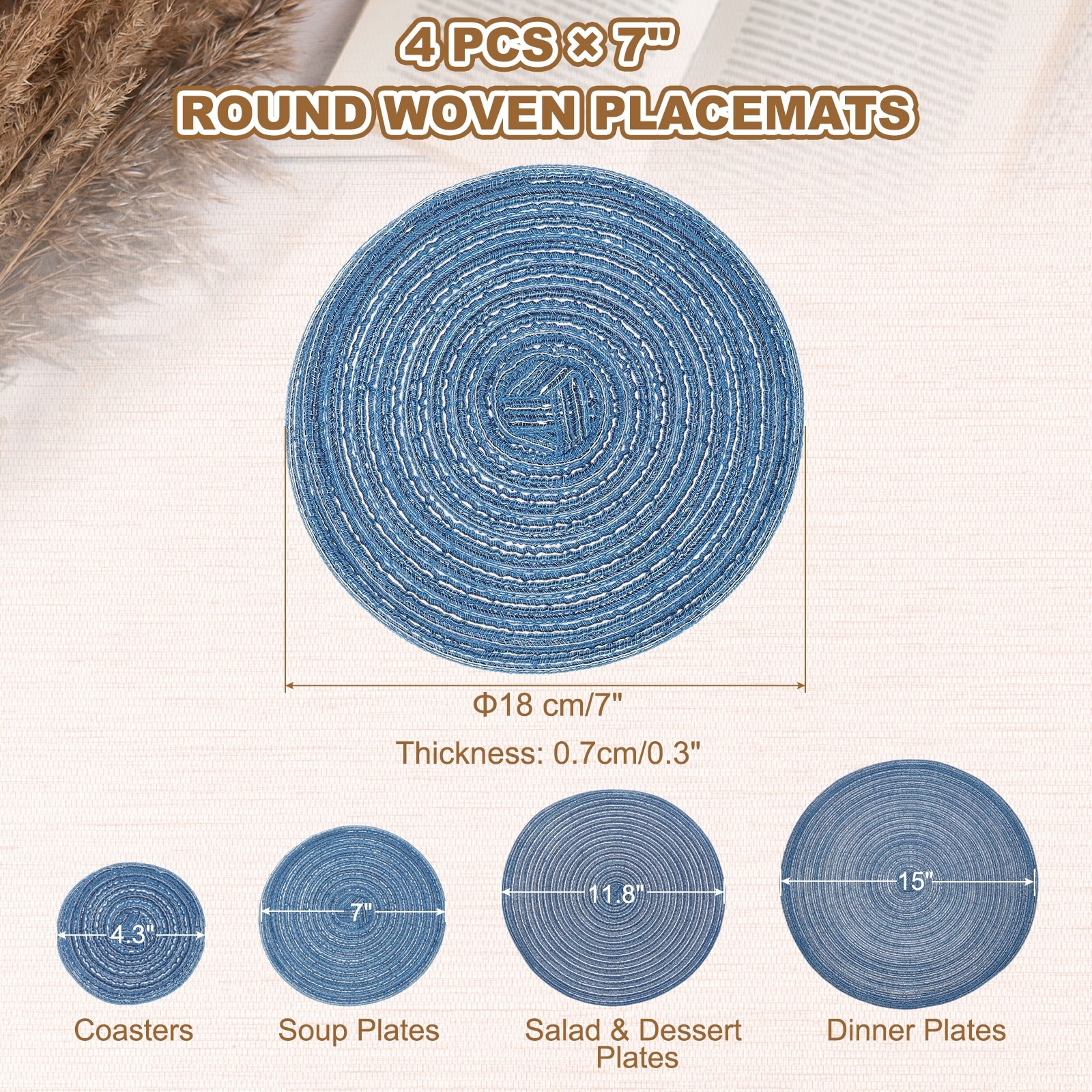 Round Woven Placemats, Braided Washable Placemat Heat Resistant Decorative Place Mat for Kitchen Dining Table