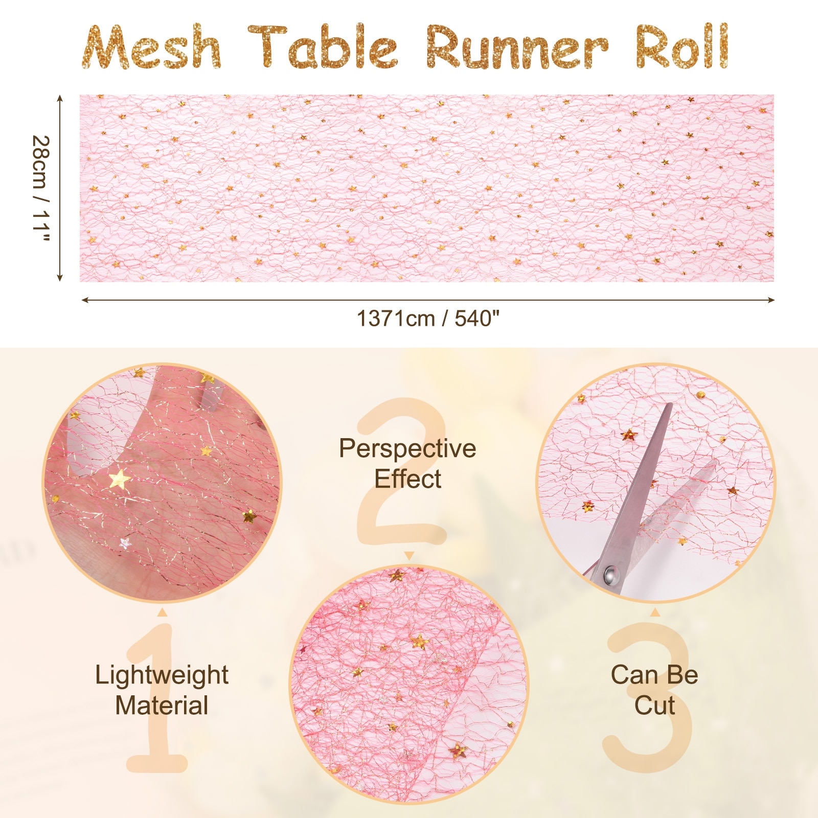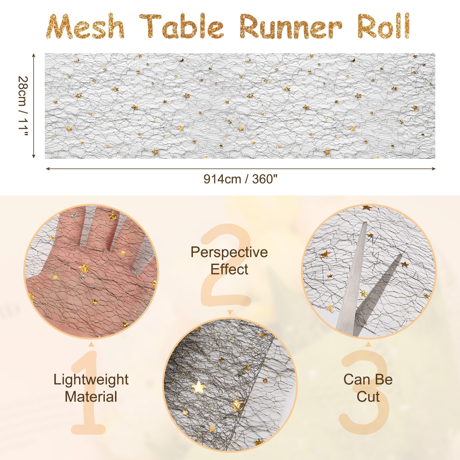 Gold Table Runner Roll, 11" x 30 Feet Sequin Foil Metallic Table Runner