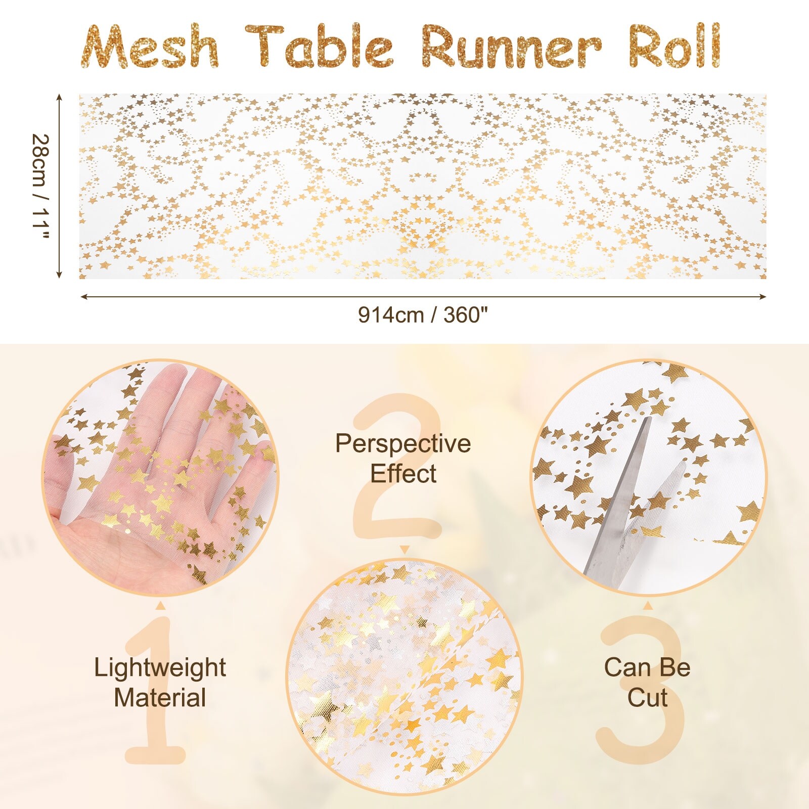 Gold Table Runner Roll, 11" x 9 Feet Sequin Foil Metallic Table Runner