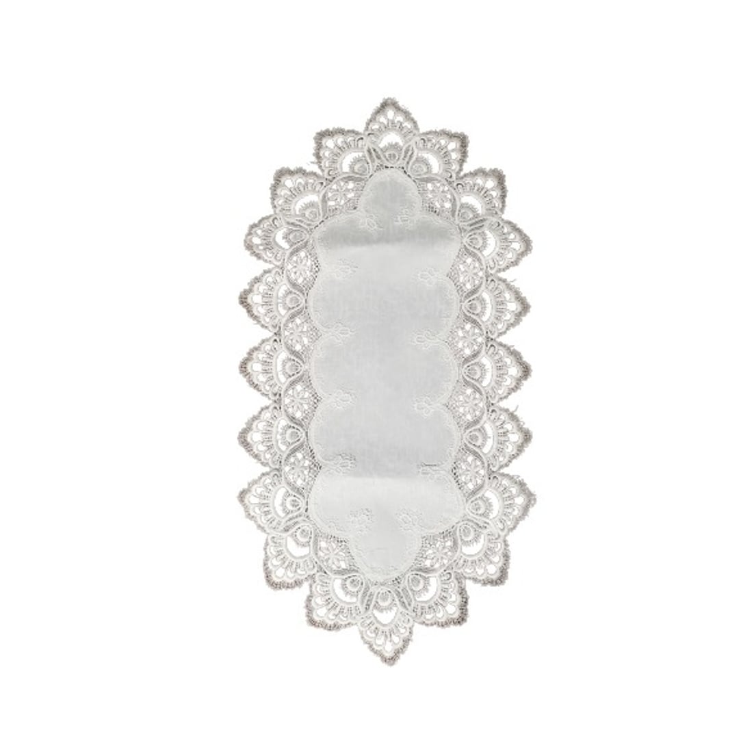 White Floral Lace Embroidered Cutwork Rectangular Table Runner, 14 by 27 inch Table Linen Decor, Water Resistance - 14 x 27"