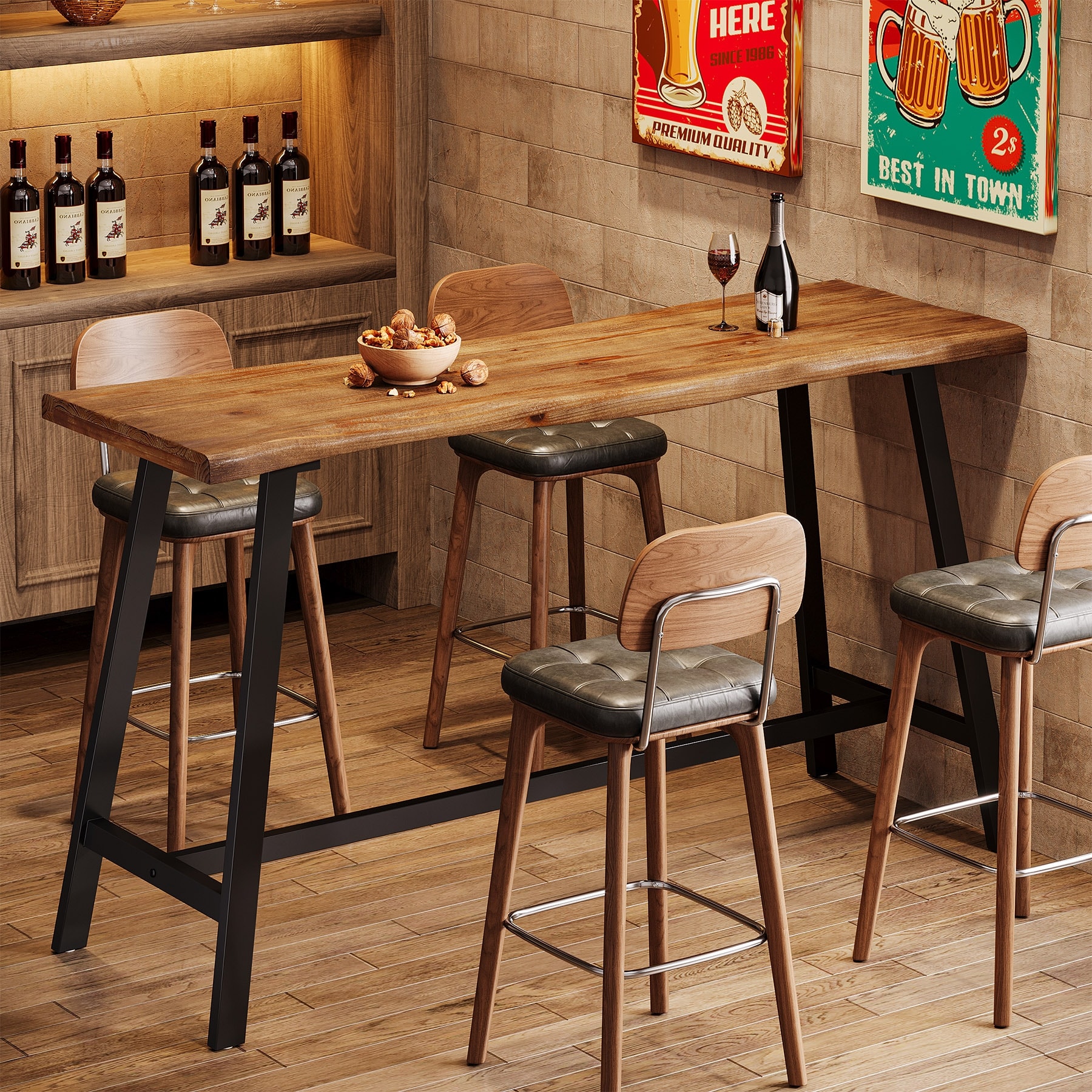 55.1-Inch Solid Wood Bar Table with Sturdy Metal Frame