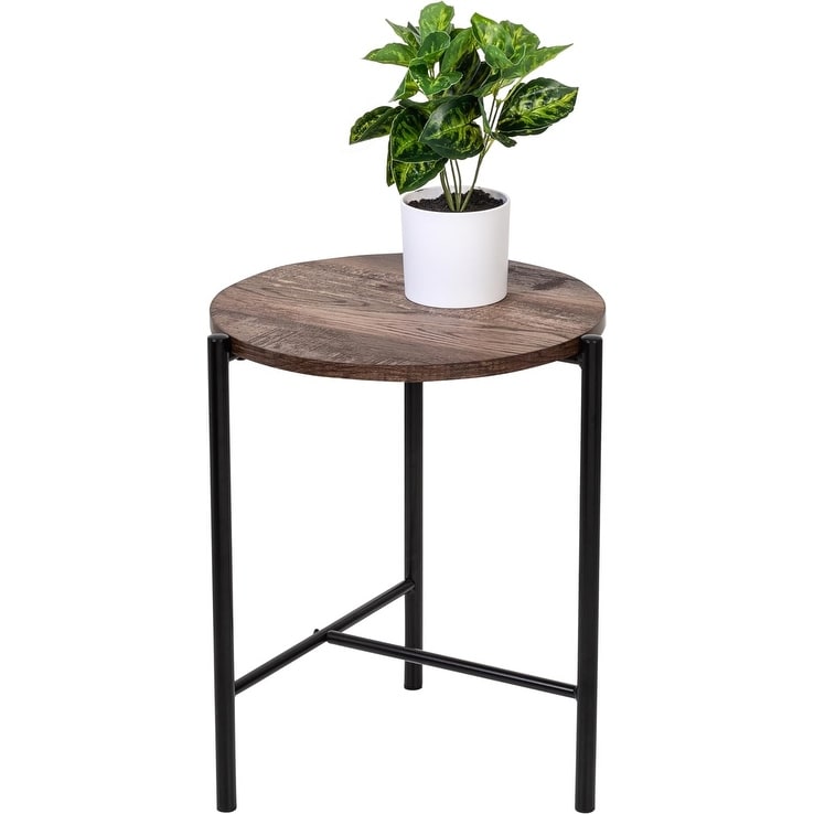 Round Side Table with Steel Frame, Walnut Finish
