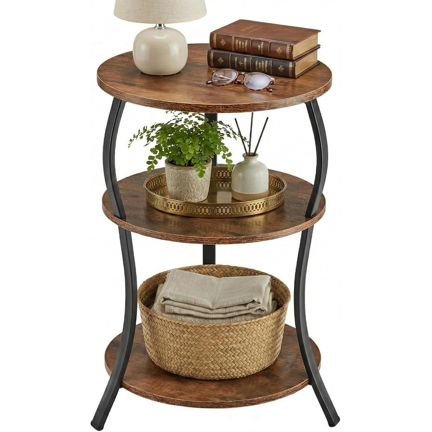 Round 3-Tier End Table with Storage for Small Spaces - Rustic Brown